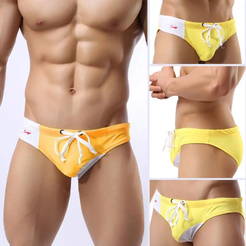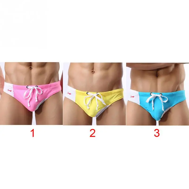 Man Summer Swimwear Beach Short Surf Swimming Trunks Soft Sexy Briefs Elasticity Breathable Stitching Color Underwear