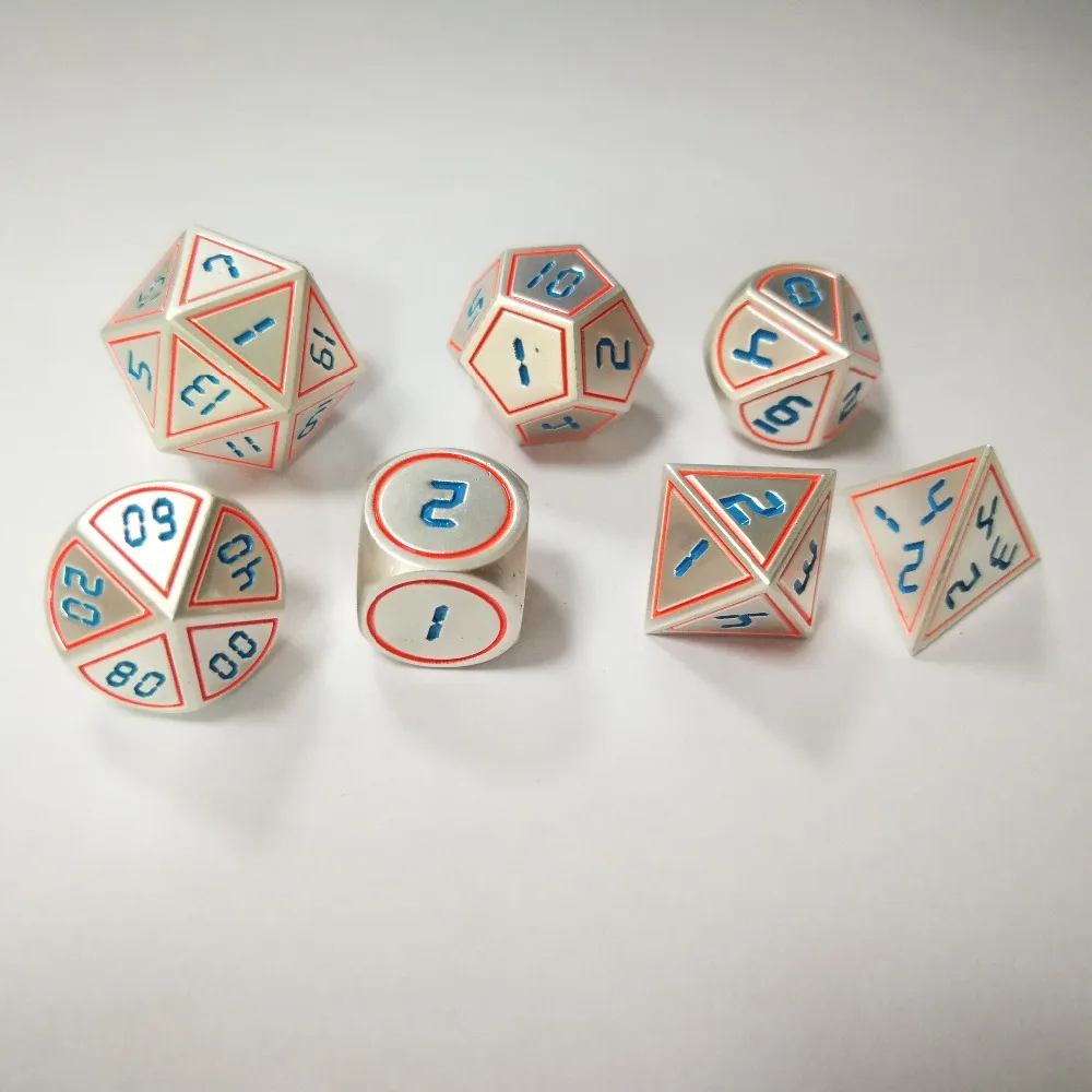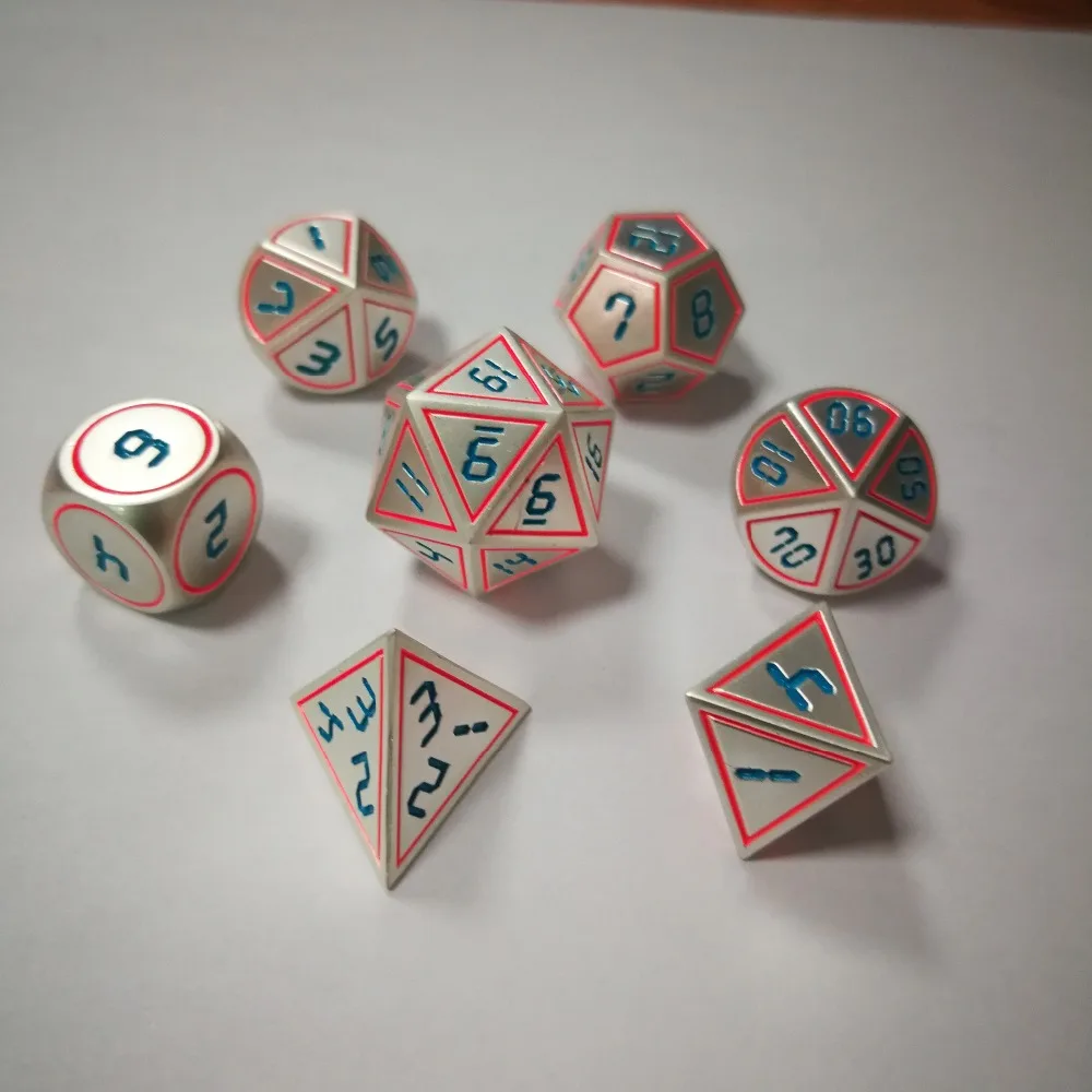 manufacturer directly sells the new font color dragon and 7 PCS /set creative RPG dice d&d metal die DND pearl silver