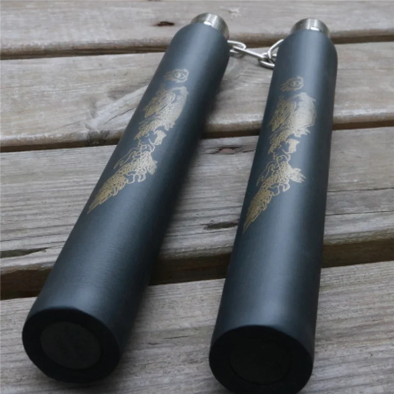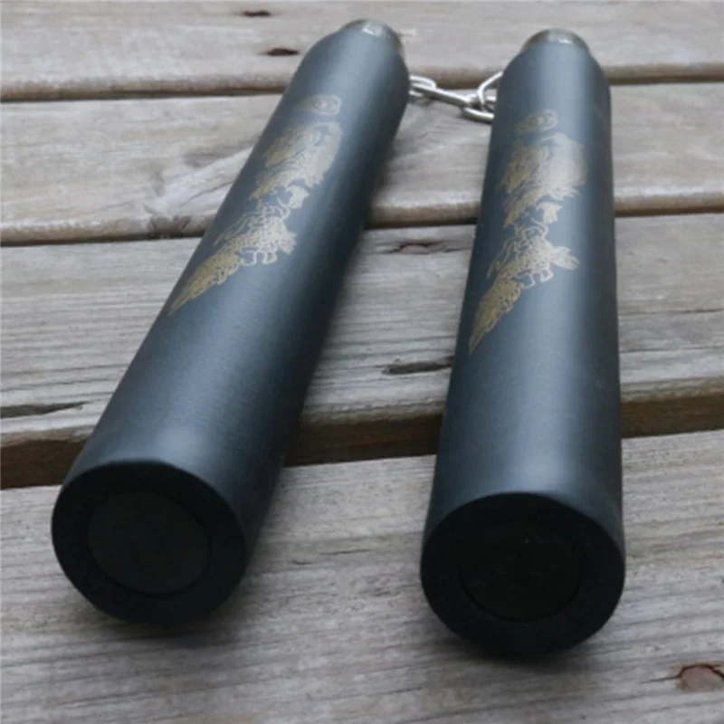Martial Arts Foam Nunchucks Sponge Metal Nunchaku Dragon Pattern Black Chinese Kung Fu Bruce Lee Lightweigt Portable 30cm