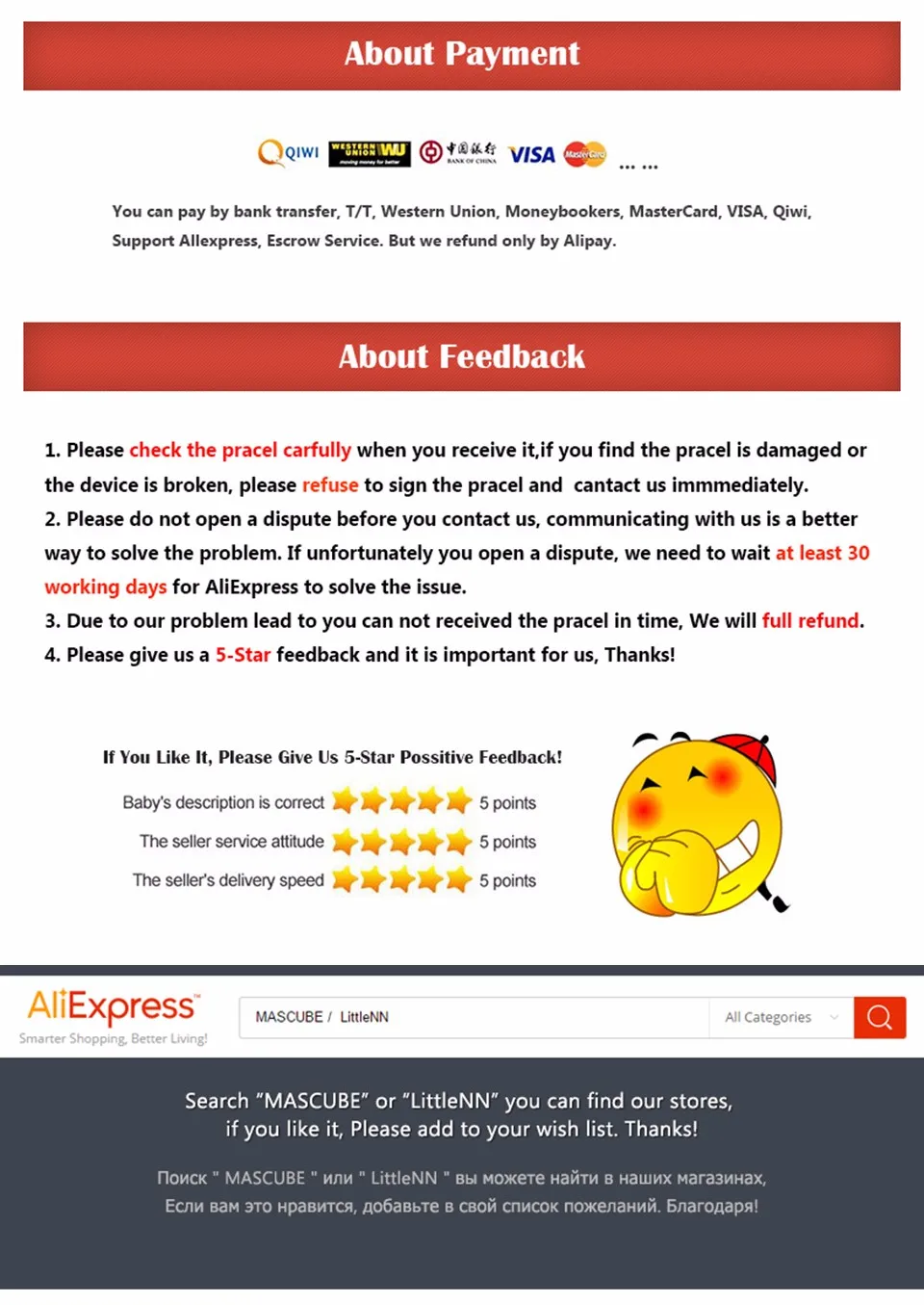 *You can submit refund requests within 15 days after the guaranteed period for delivery (45 days) has expired. You can do it by sending a message on Contact Us page