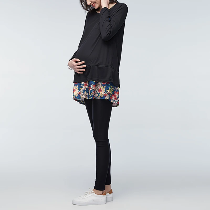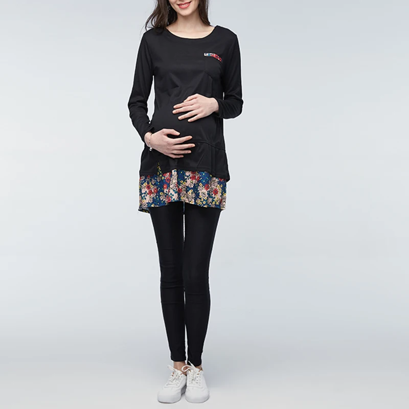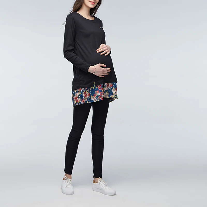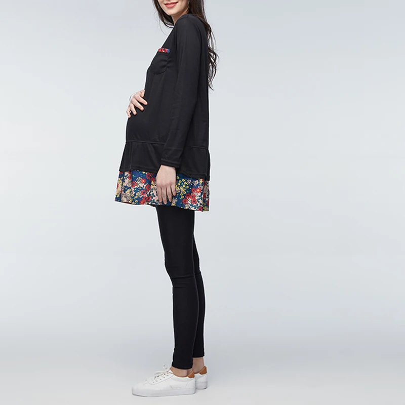 Maternity Clothings 2018 Summer Floral Print Dress Pregnant Women Long Sleeve Casual Loose Splice Pregnancy Vestidos Plus Size