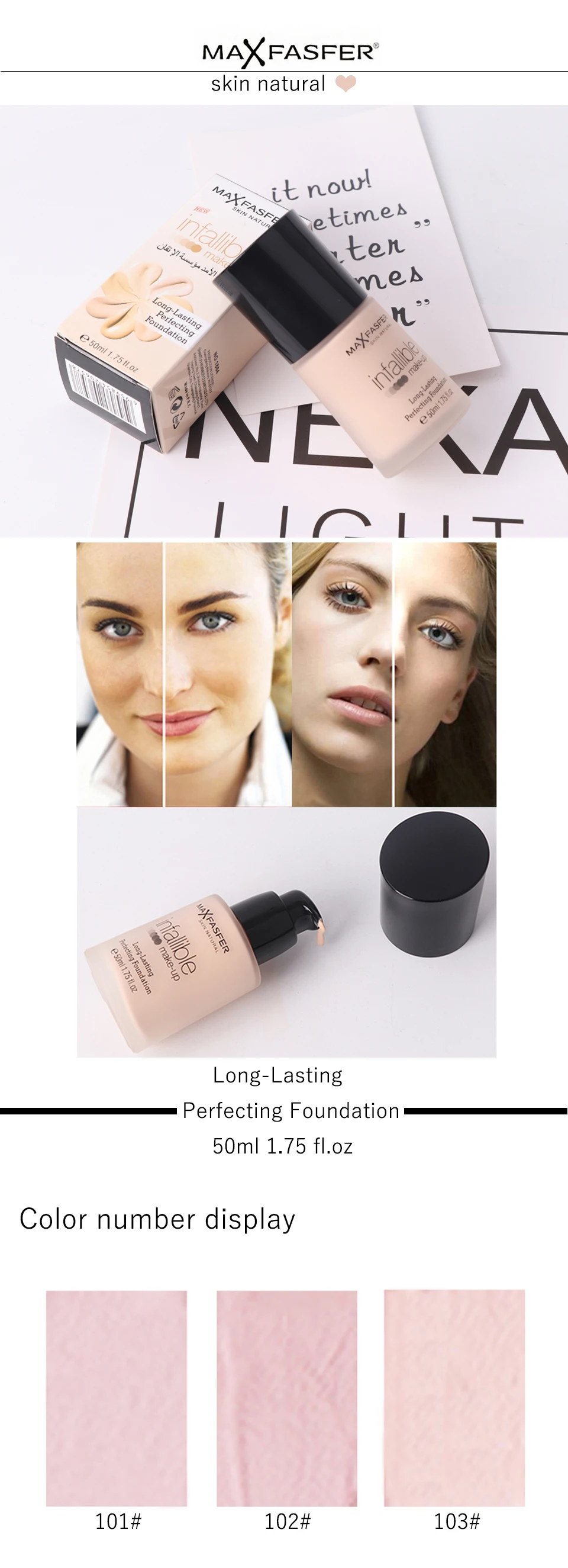 -MAXFASFERX Brand Foundation is a lightweight foundation treatment that boosts radiance to leave skin silky smooth and whitening.