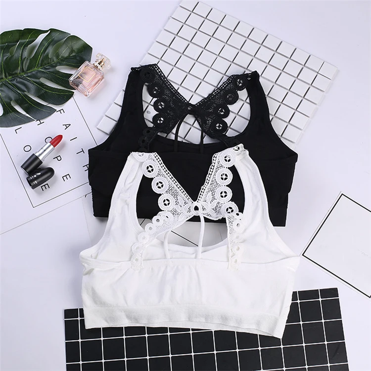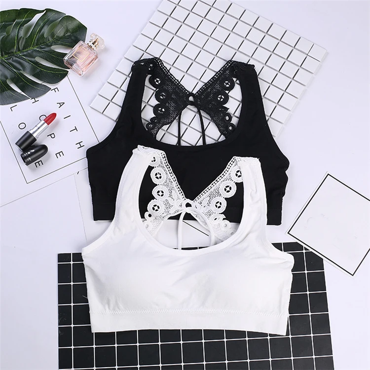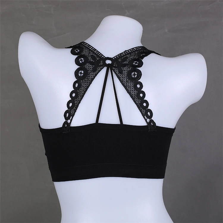 MAXMESSY Black Crop Cami Top Seamless Camisole Malfunction Underwear Sexy Backless Butterfly Lace Backless Tank Top B030