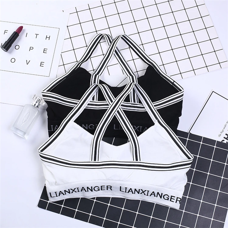 MAXMESSY New Women Camisole Striped Tops Sexy Letters Back Cross Short Style V Neck Female Slim Fitness Tank Tops B019