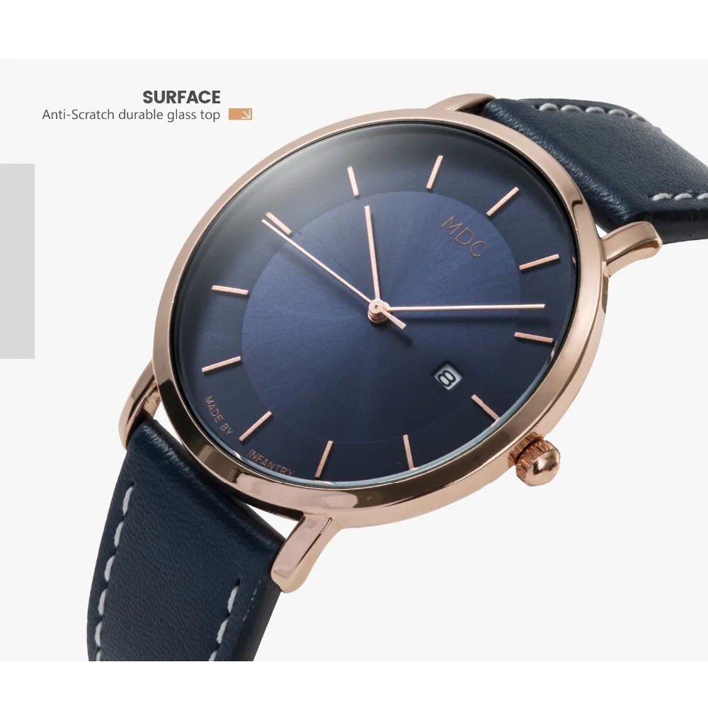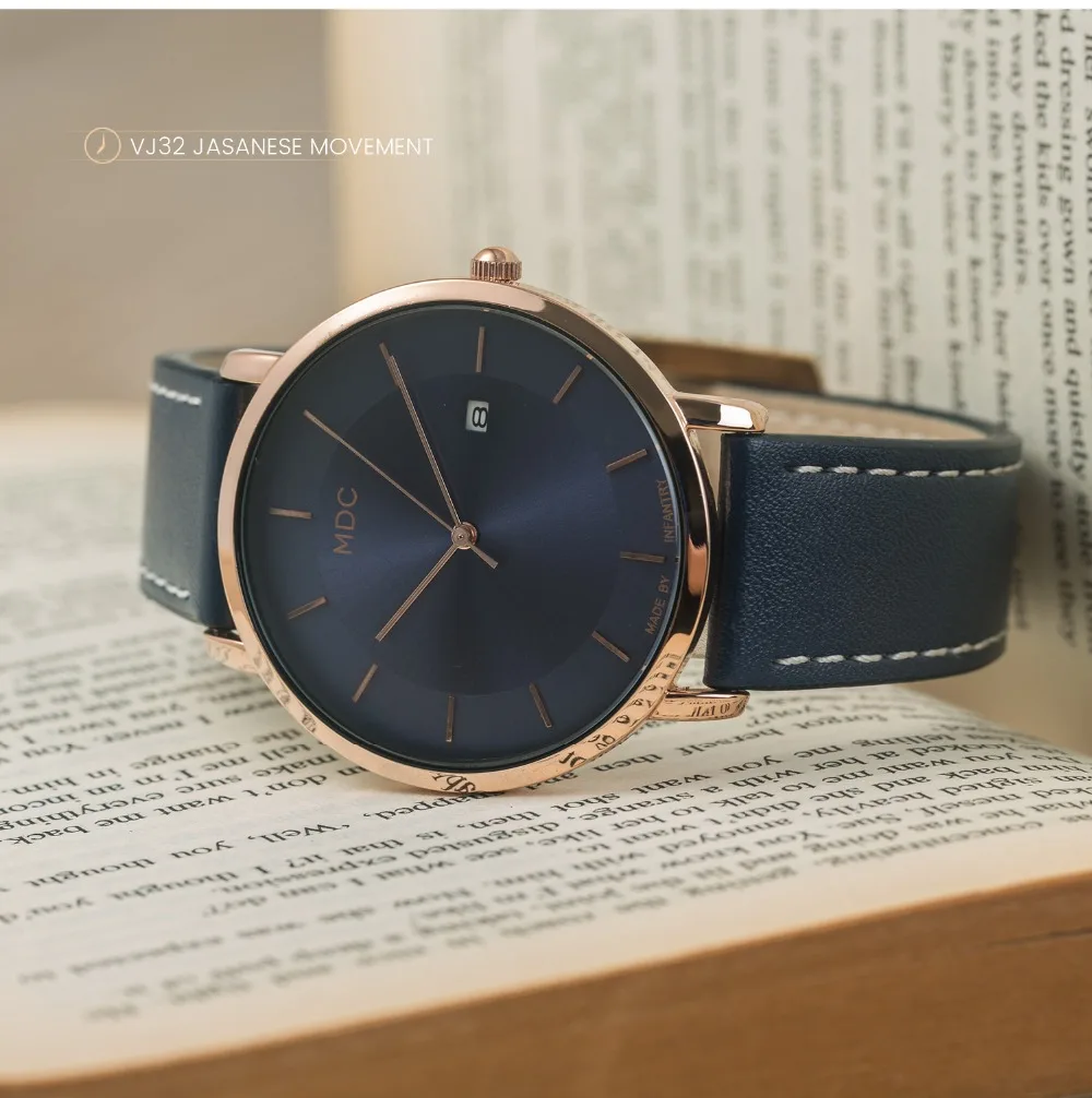 MDC Women Watches Top Brand Luxury 2018 Minimalist Rose Glod Watch Women Blue Leather Ladies Retro Vintage reloj mujer top femme