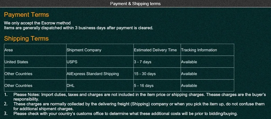 Shipping & Payment