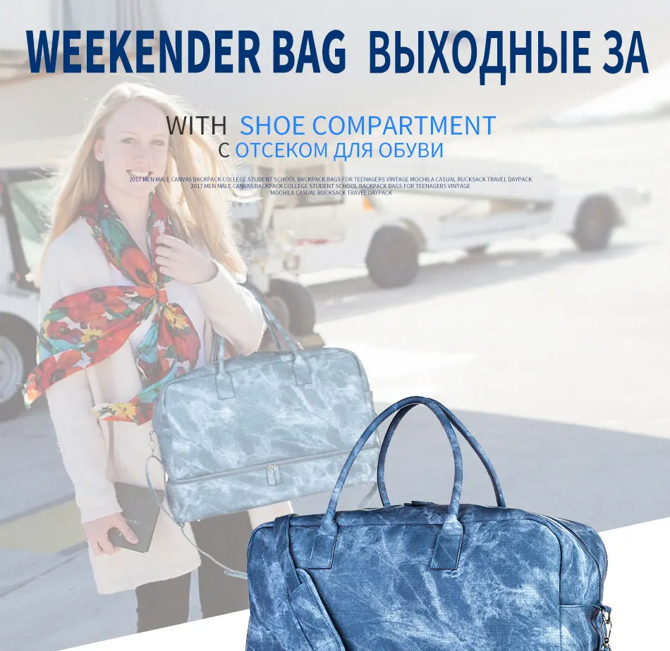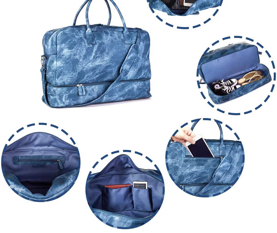 Mealivos Jean PU Fashion Women large Weekender Bag Overnight Travel bag Carry On Duffel with Shoe Pouch Duffel Bags