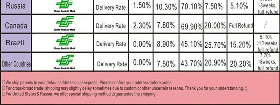 • If you did not receive the product within the guaranteed time( 45 days not including 2-5 day processing) you can request a refund or a reshipment.
