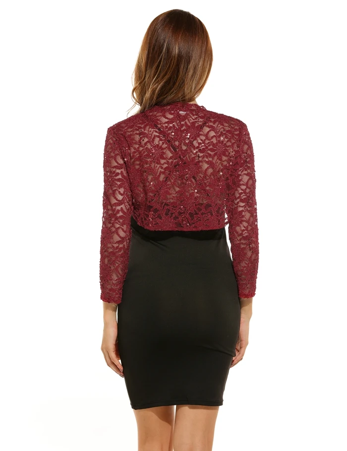 Meaneor Brand Knit Bolero Shrug Women Casual 3/4 Sleeve Lace Floral Light Crop Open Stitch Cardigan Short All-match Shawl Wrap