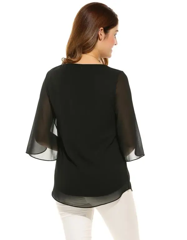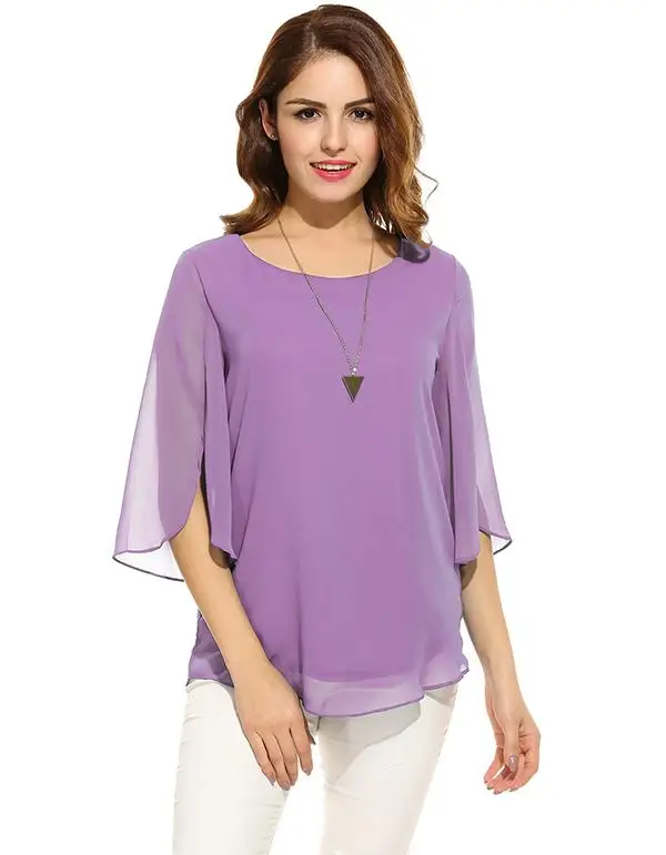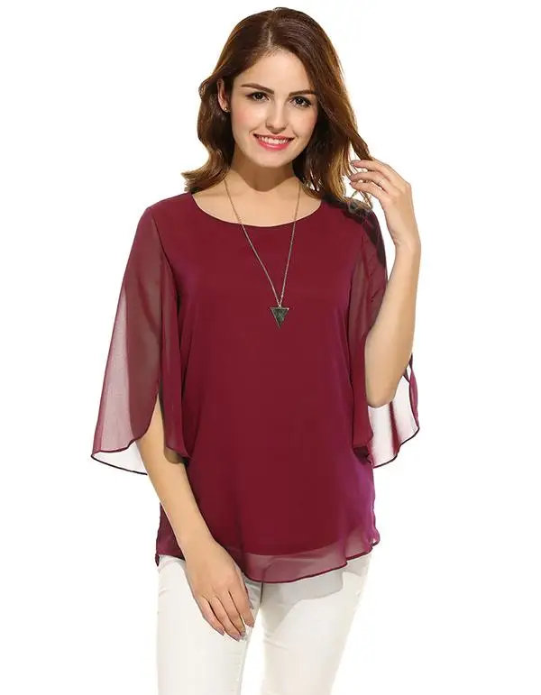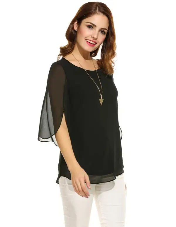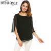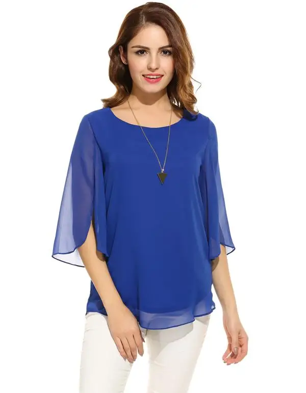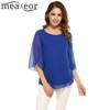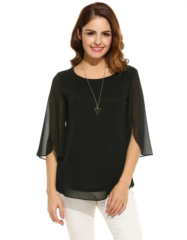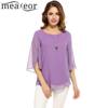 Meaneor Camiseta Tops Blusa Women Casual 3/4 Sleeve O Neck Solid Loose Pullover Chiffon Blouse 2018 Spring summer