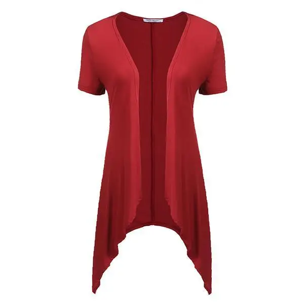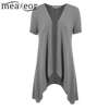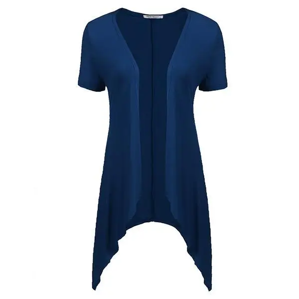 Meaneor V Neck Girls Top Shirts Short Sleeve Women’s Shirts Open Front Irregular Hem Cardigan Casual Summer Top Women Shirts