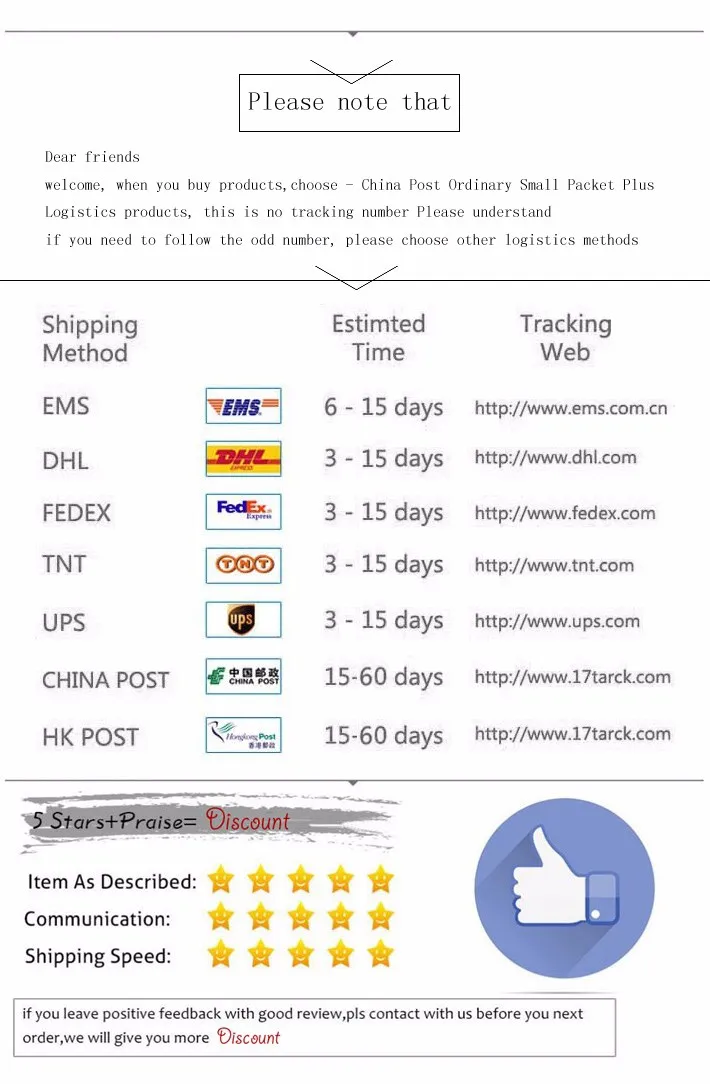 Packages from our warehouse in China will be shipped by ePacket or EMS depending on the weight and size of the product. Packages shipped from our US warehouse are shipped through USPS.