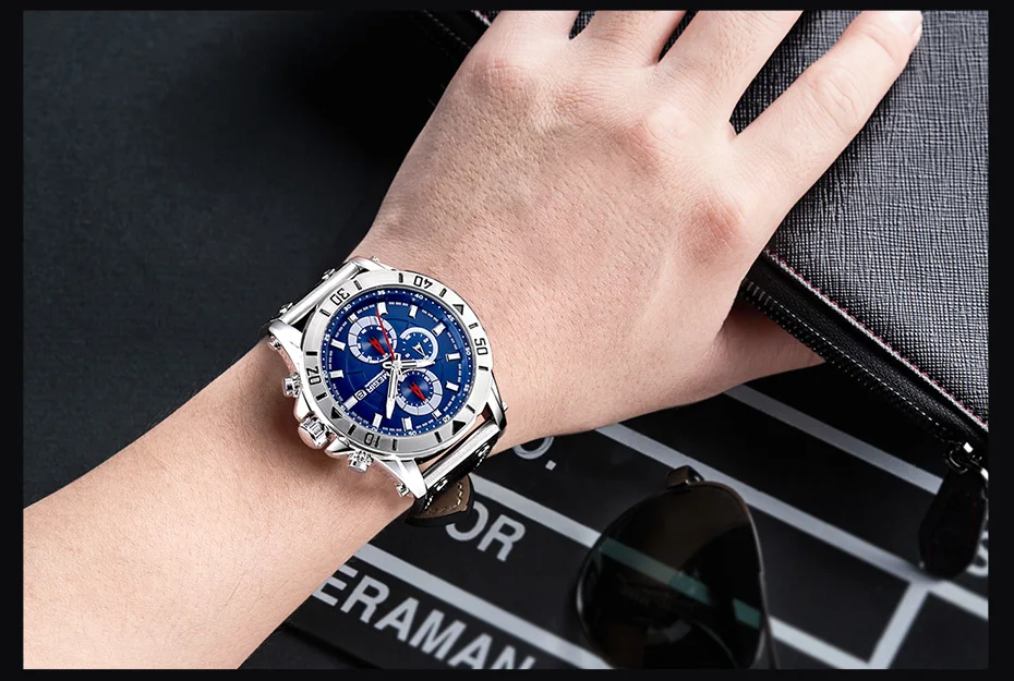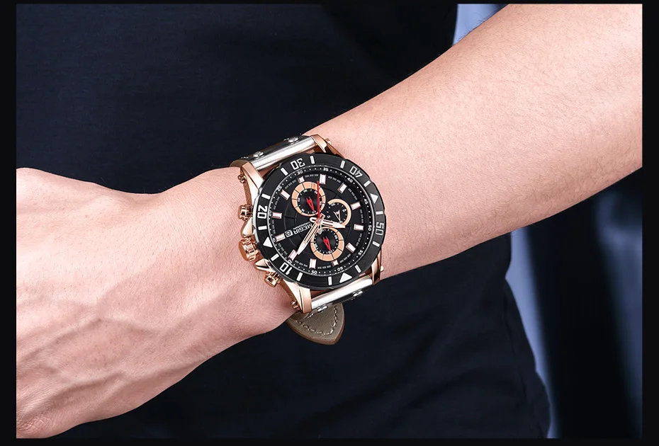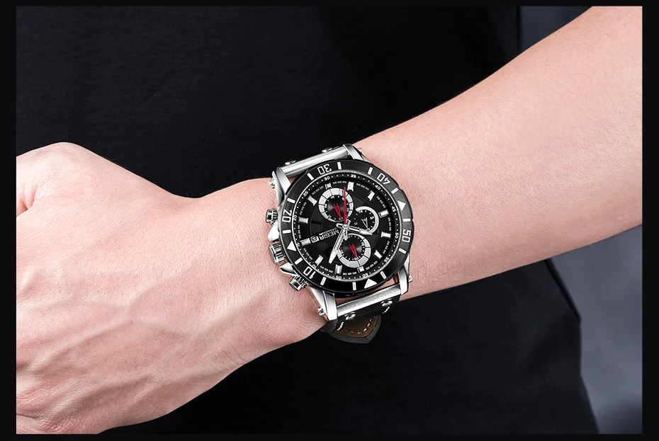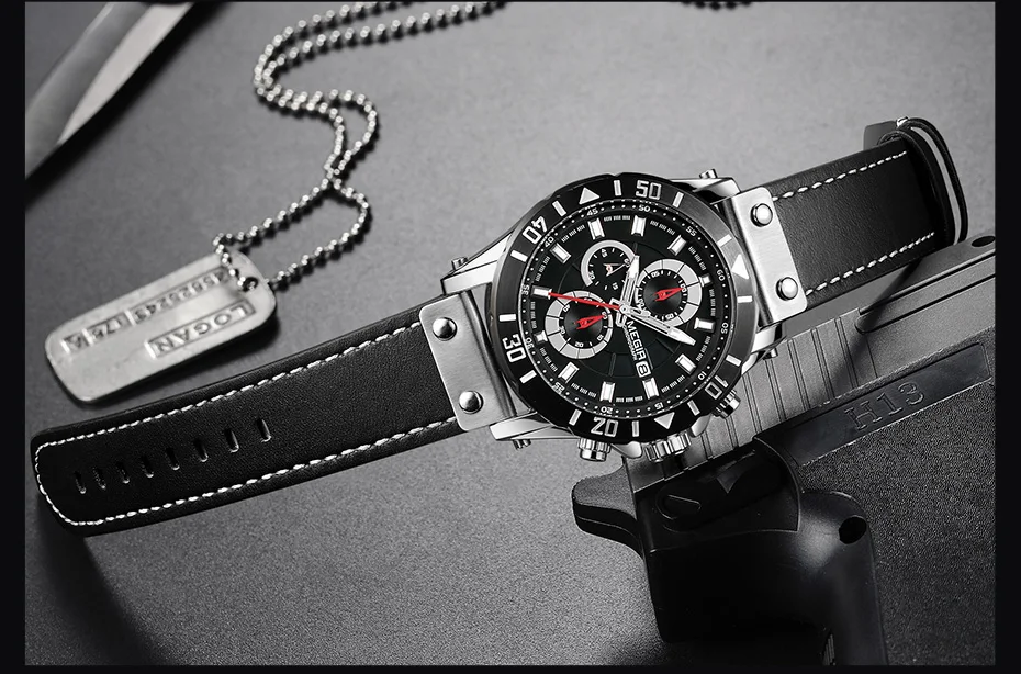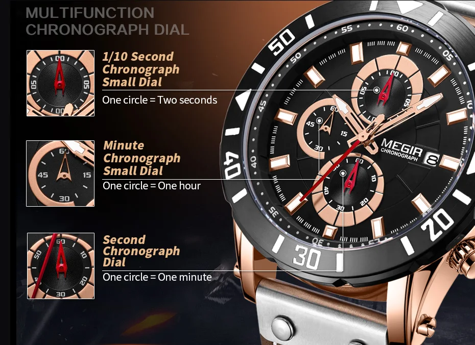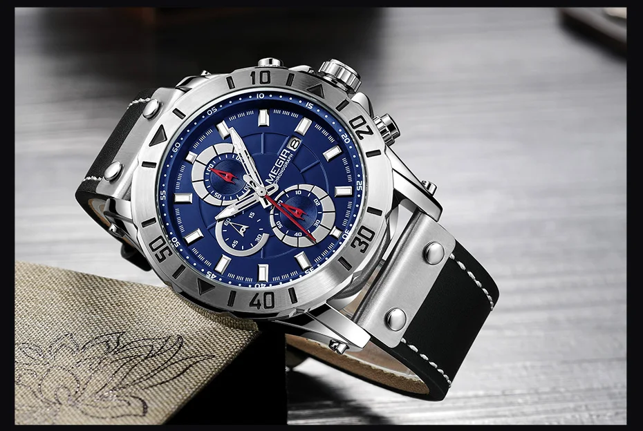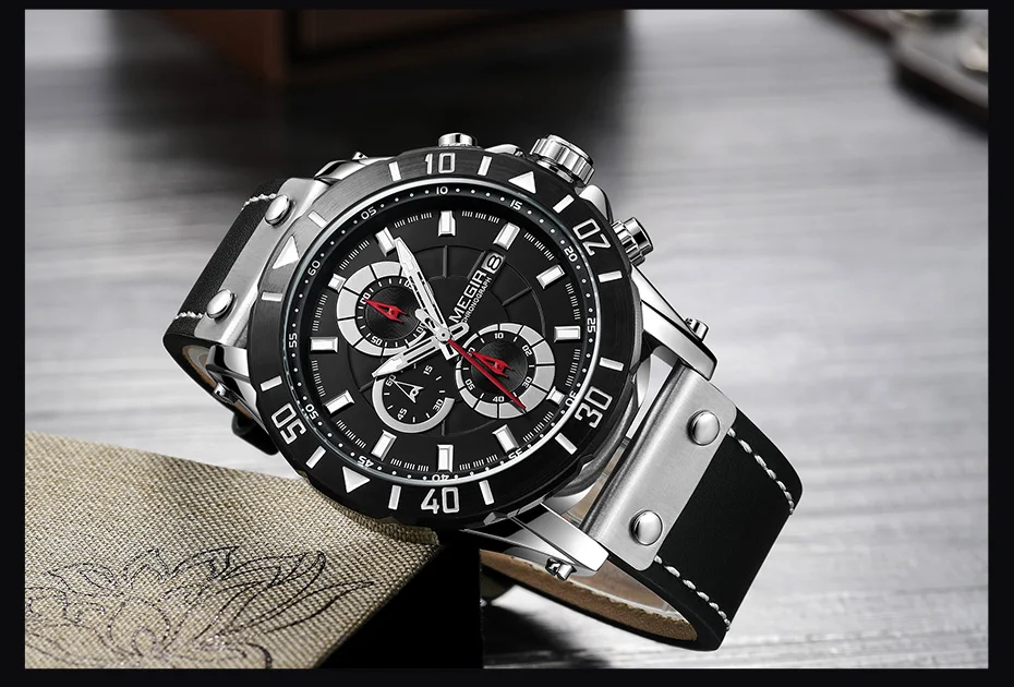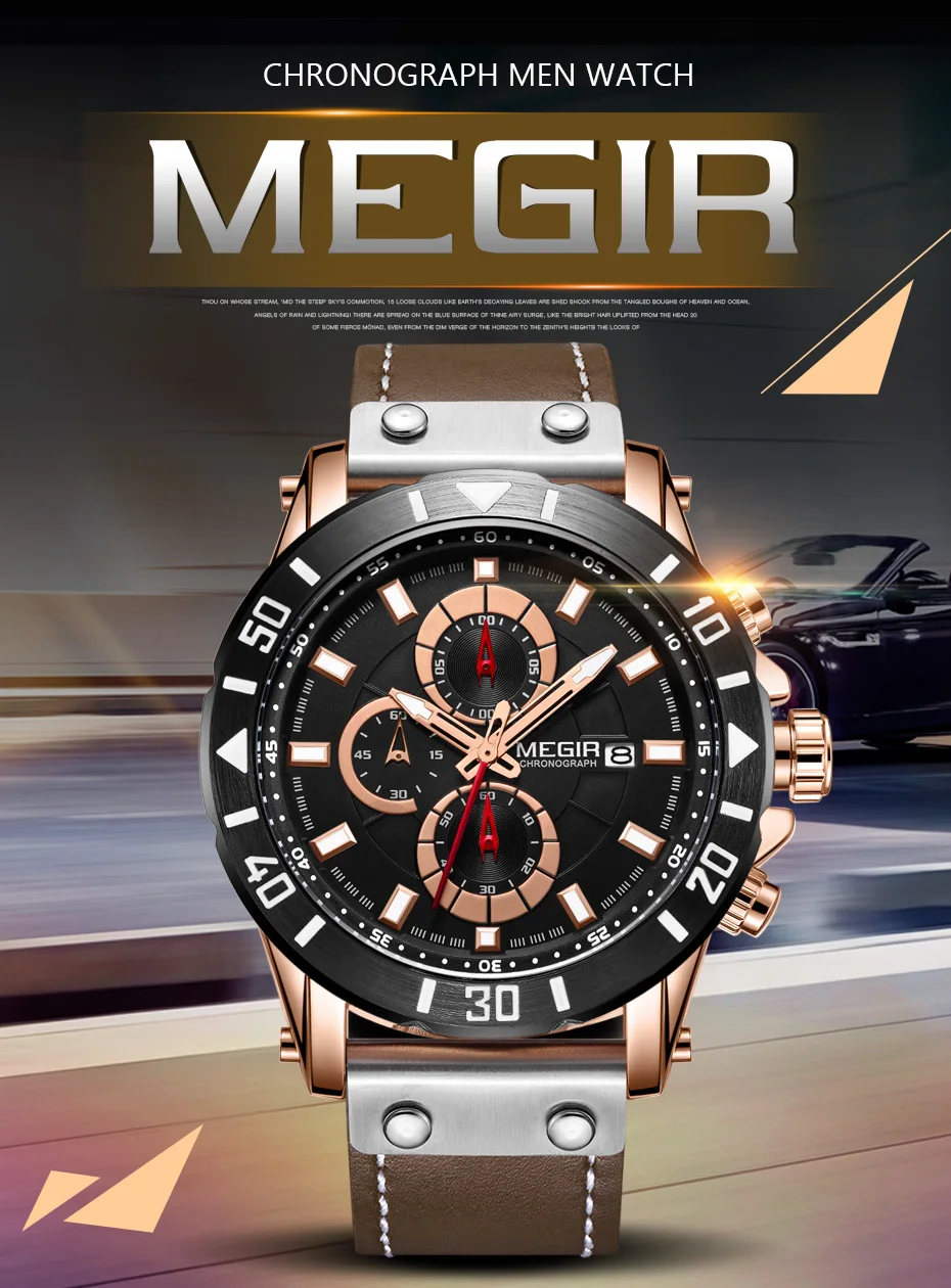 MEGIR Chronograph Sport Mens Watches Top Brand Luxury Leather Quartz Watch Men Clock Wristwatches Relogio Masculino Reloj Hombre