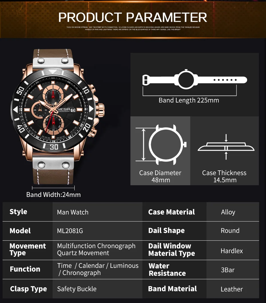 – Original MEGIR watch from MEGIR Official Store;