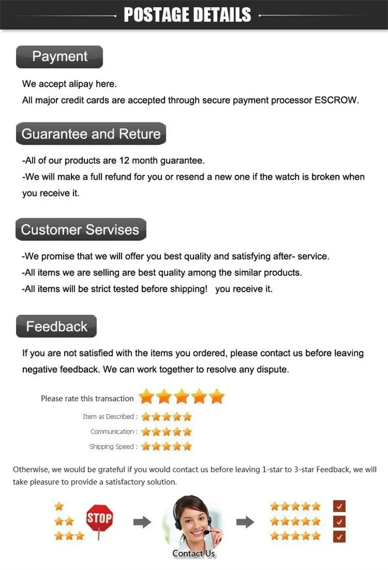 • If you did not receive the product within the guaranteed time( 45 days not including 2-5 day processing) you can request a refund or a reshipment.