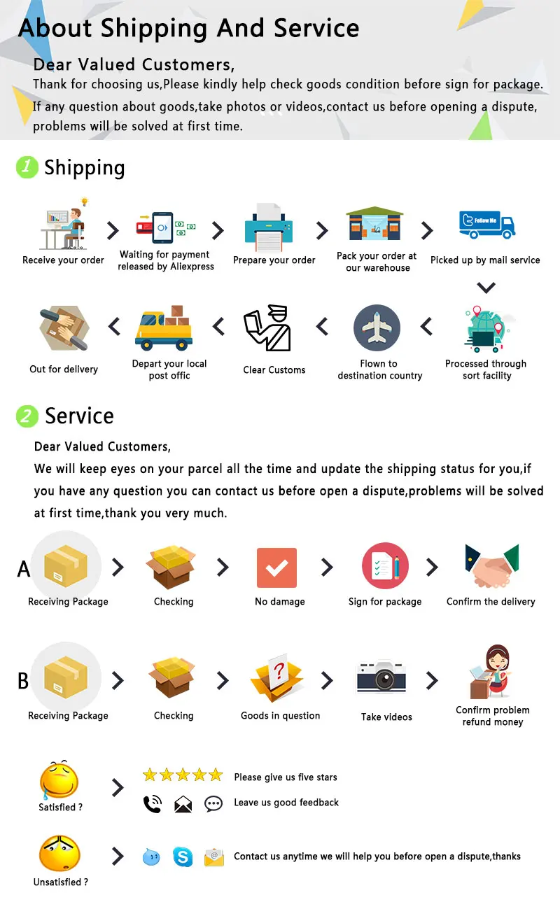 • If you did not receive the product within the guaranteed time( 45 days not including 2-5 day processing) you can request a refund or a reshipment.
