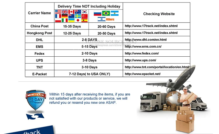*You can submit refund requests within 15 days after the guaranteed period for delivery (45 days) has expired. You can do it by sending a message on Contact Us page