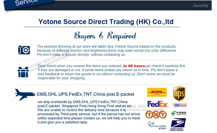 Packages from our warehouse in China will be shipped by ePacket or EMS depending on the weight and size of the product. Packages shipped from our US warehouse are shipped through USPS.
