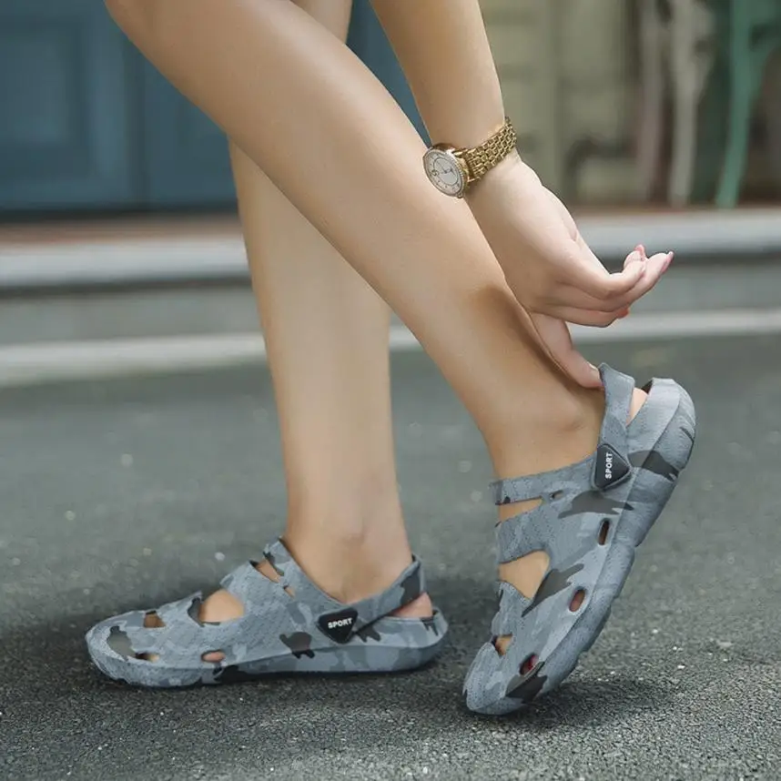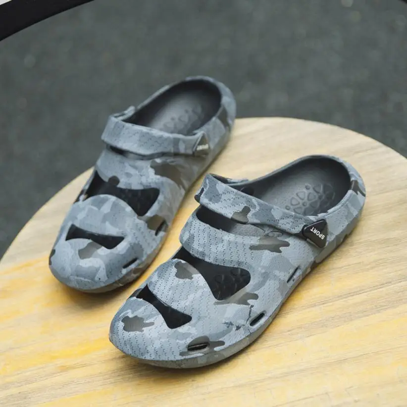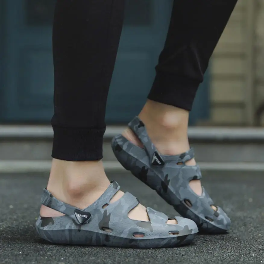Men Camouflage Hole Shoes Slides Unisex Breathable Casual Outdoor Beach Slippers Comfort Anti-Slip Soft Shower Hollow Sandals