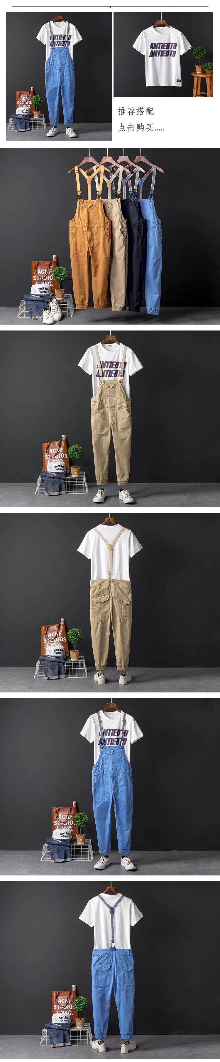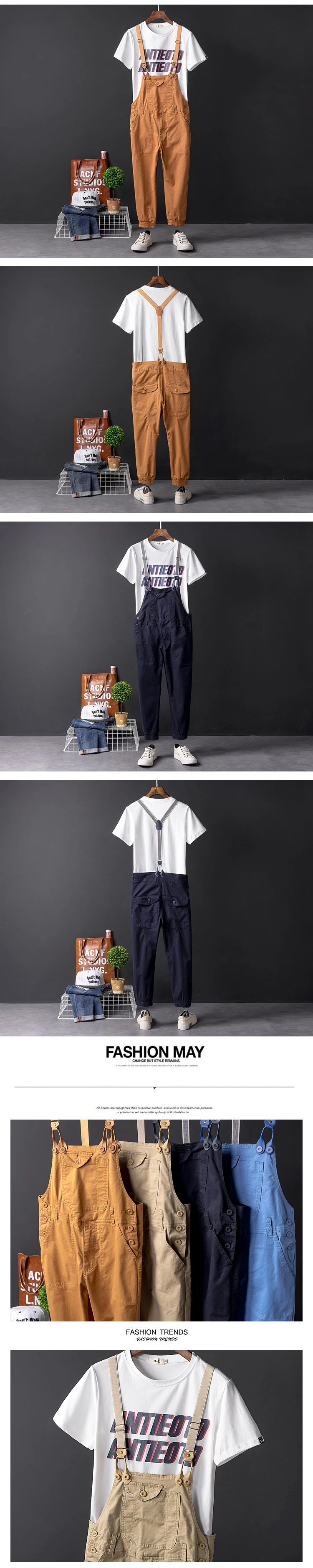 Men Casual Straight Cotton Pocket Overalls Mens Candy color Denim Jumpsuits Male Ankle Length Harem Suspenders pants A53101