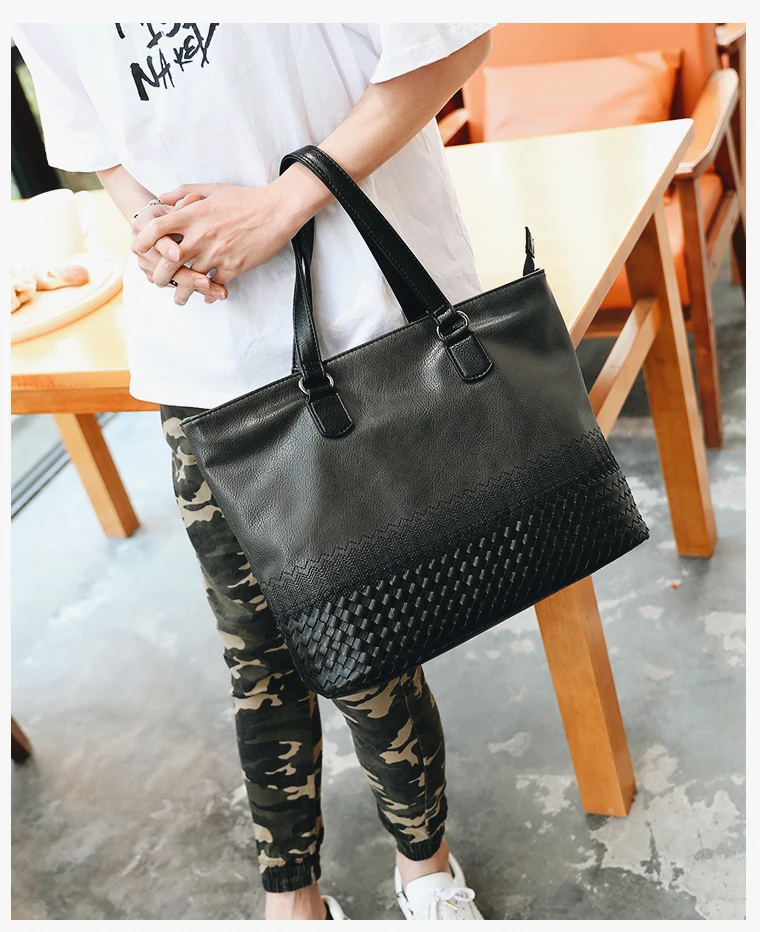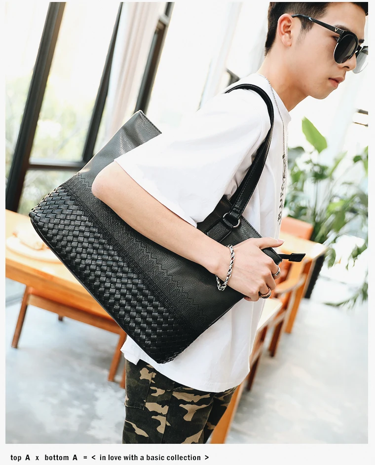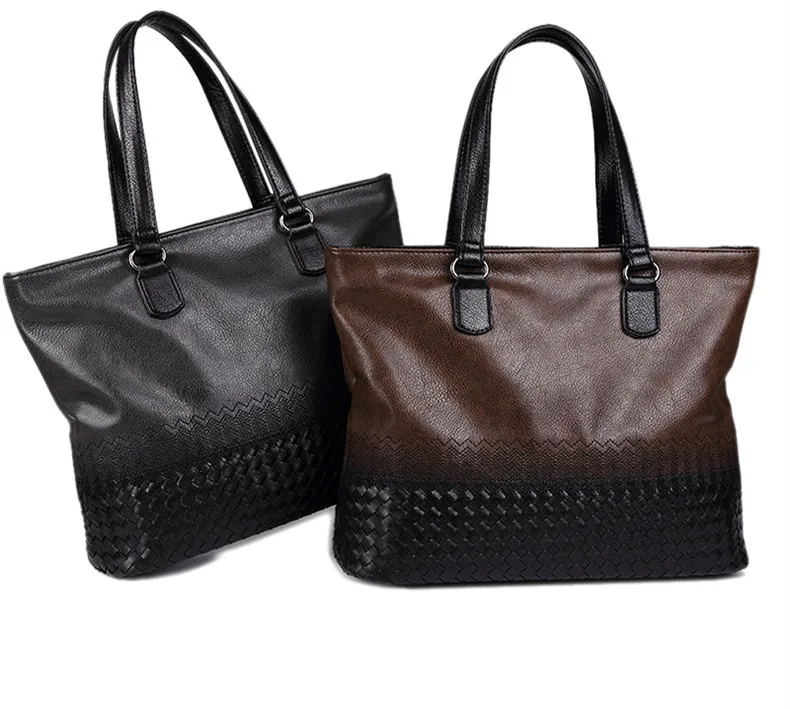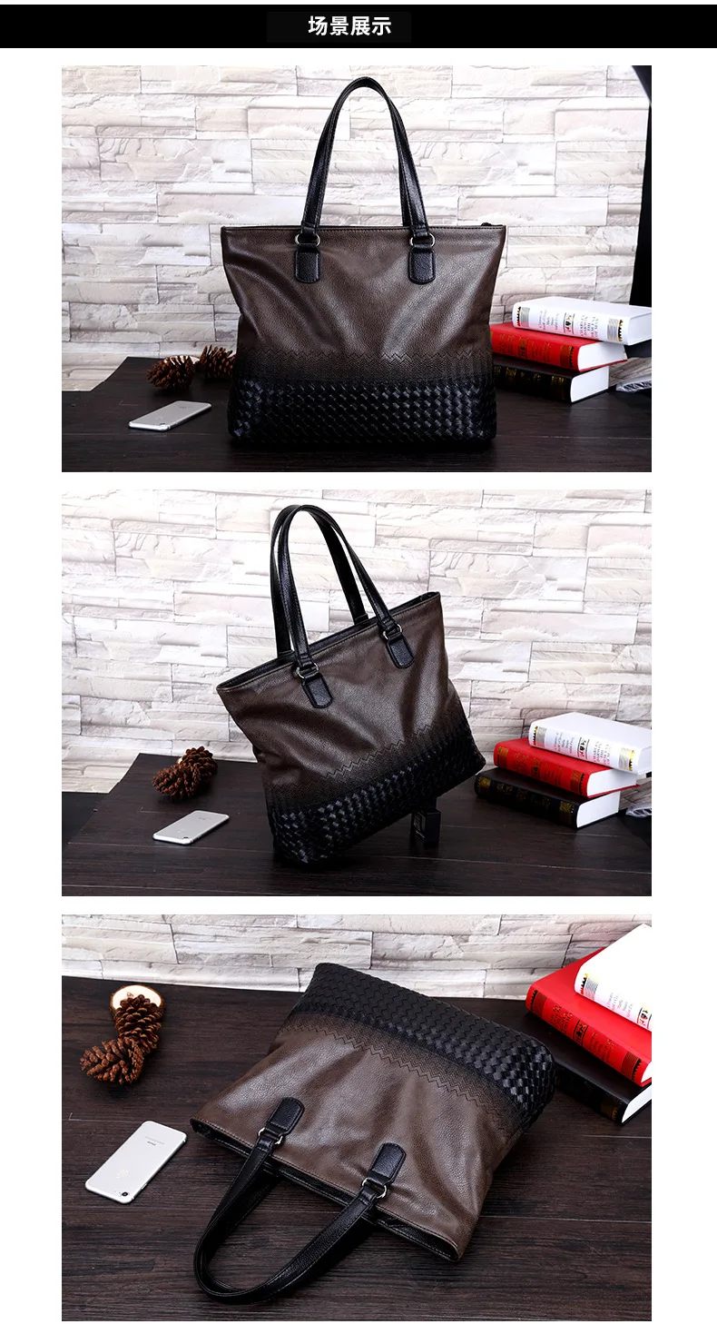 Men Classic Woven Style Business Briefcase Bag Fashion Luxury Bag Male Handbag For Business Travel