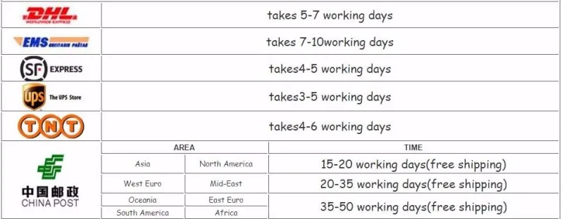 Packages from our warehouse in China will be shipped by ePacket or EMS depending on the weight and size of the product. Packages shipped from our US warehouse are shipped through USPS.