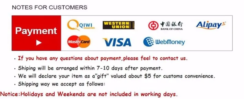 We are not responsible for any custom fees once the items have shipped. By purchasing our products, you consent that one or more packages may be shipped to you and may get custom fees when they arrive in your country.