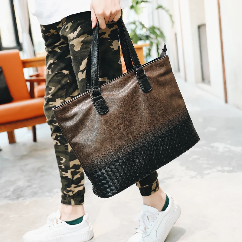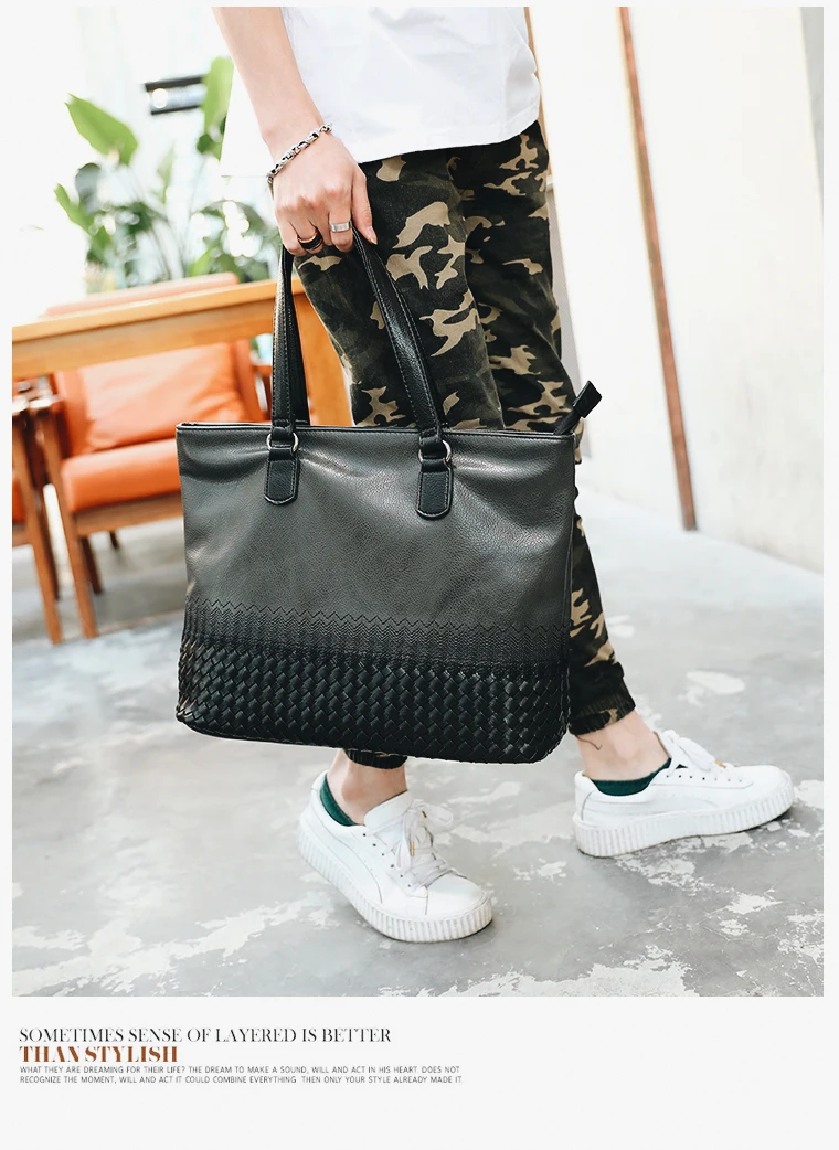 Men Classic Woven Style Business Briefcase Bag Fashion Luxury Bag Male Handbag For Business Travel