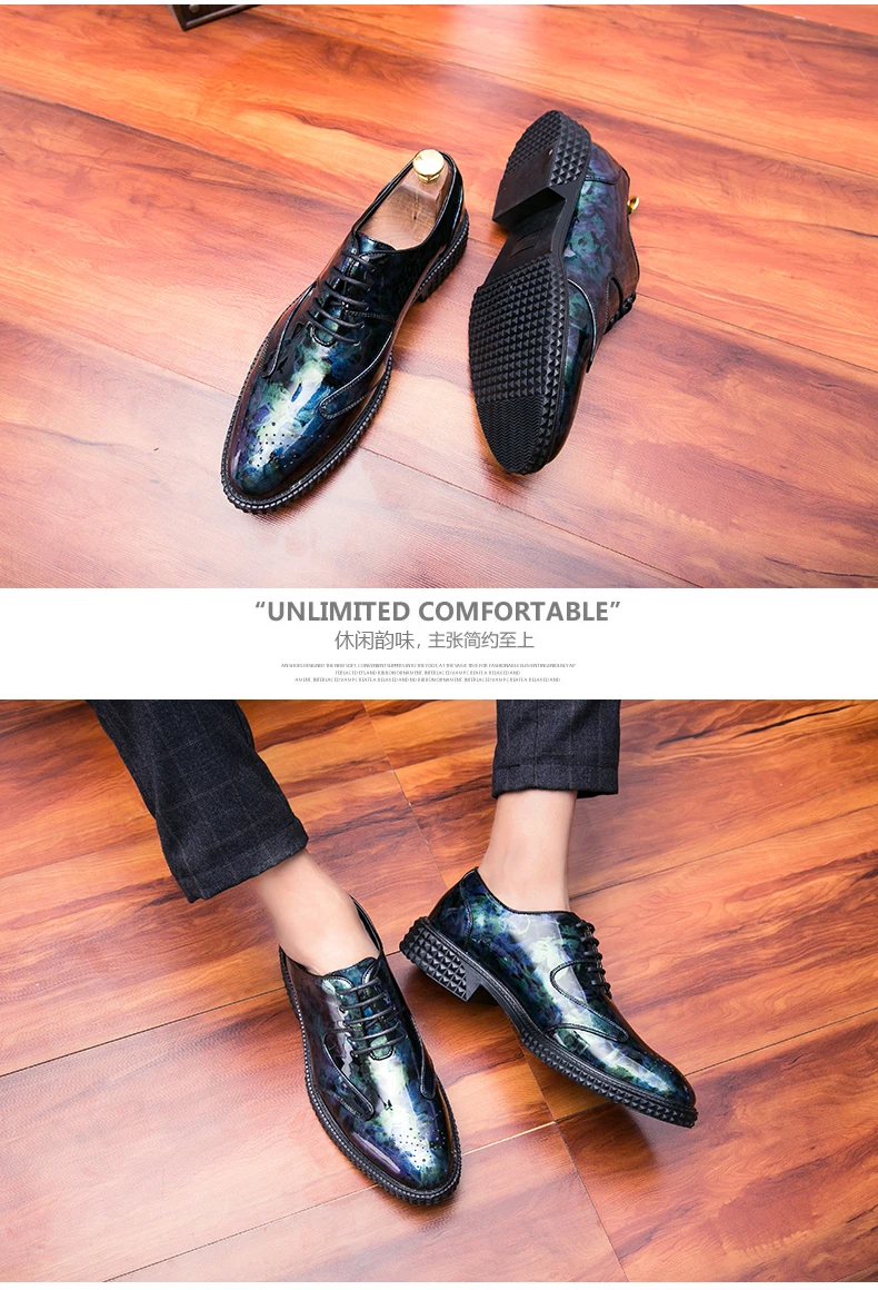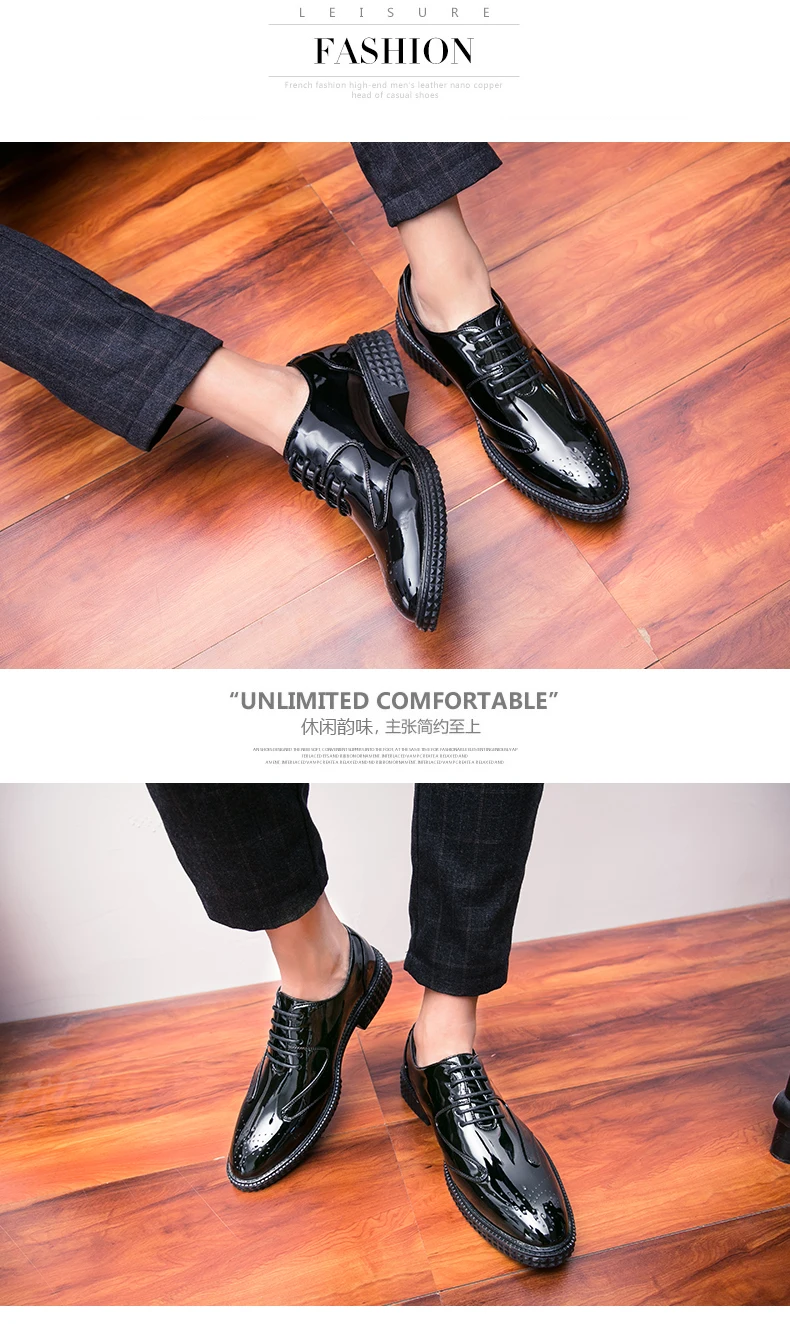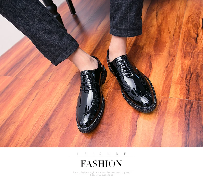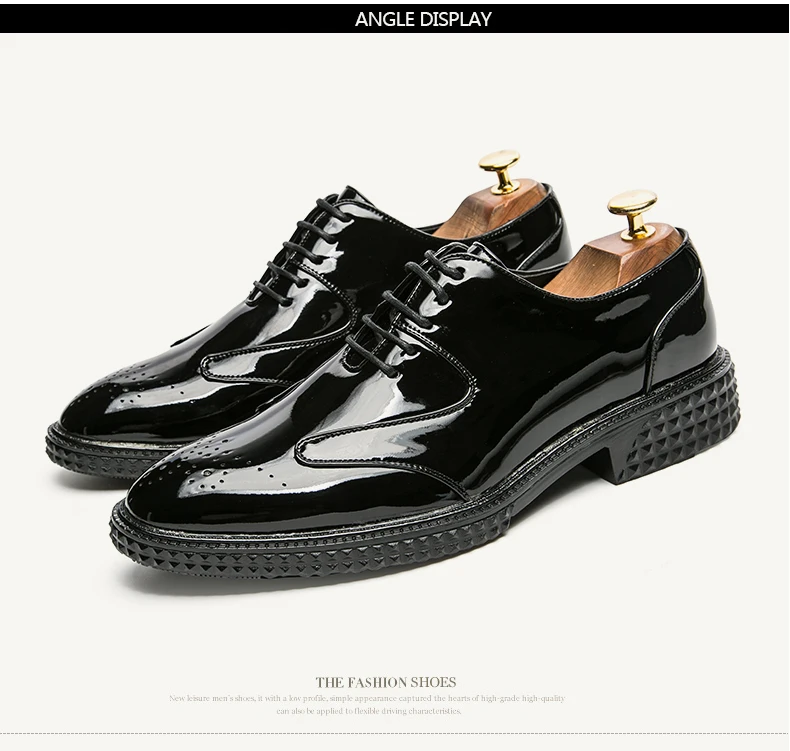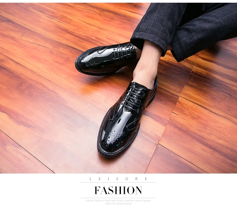 Men Dress Shoes Brogue Style Men Oxford Formal Shoes Men Leather Flats Wedding Shoes Beautiful Reflection Fashion Sneakers