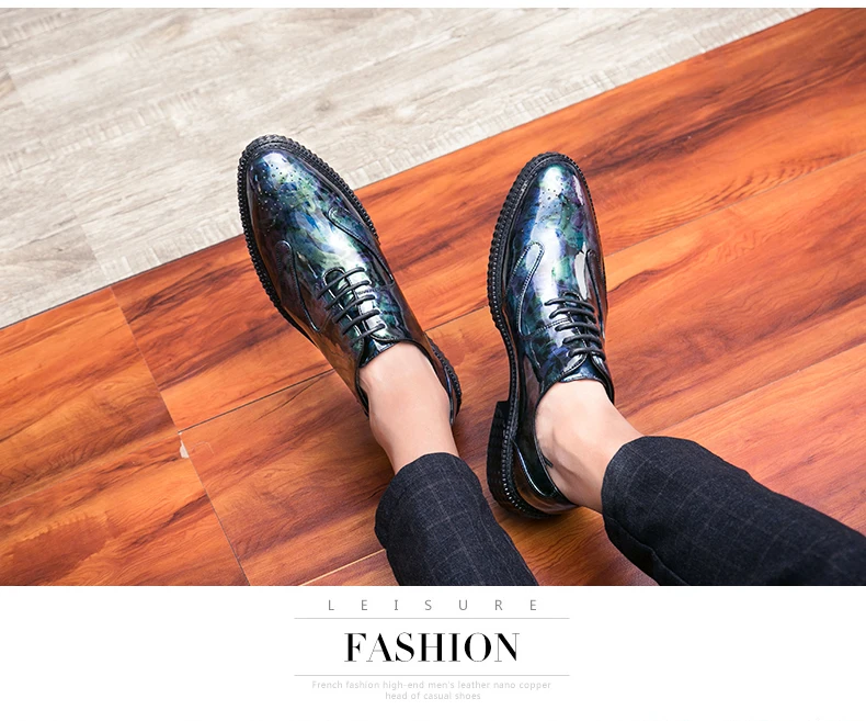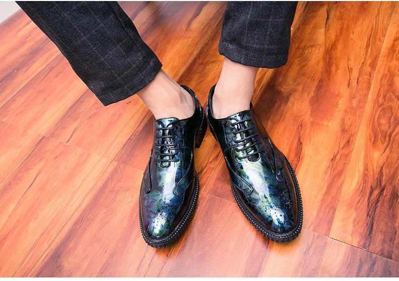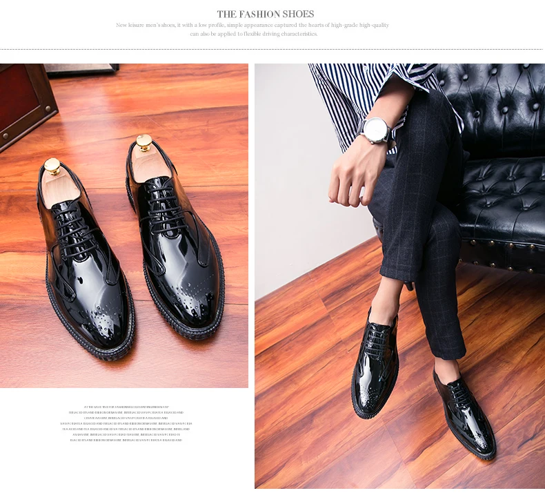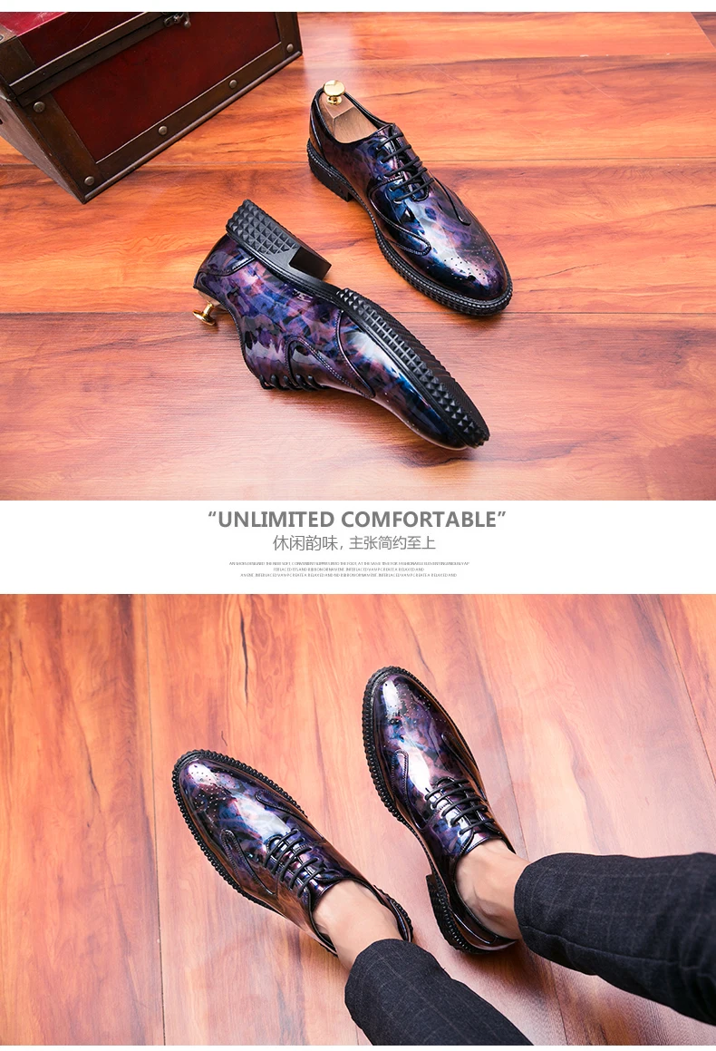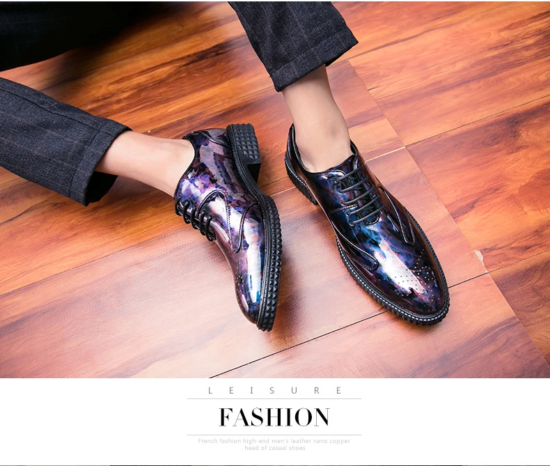 Men Dress Shoes Brogue Style Men Oxford Formal Shoes Men Leather Flats Wedding Shoes Beautiful Reflection Fashion Sneakers