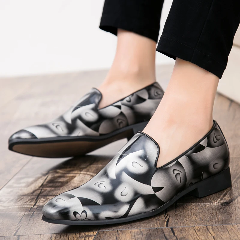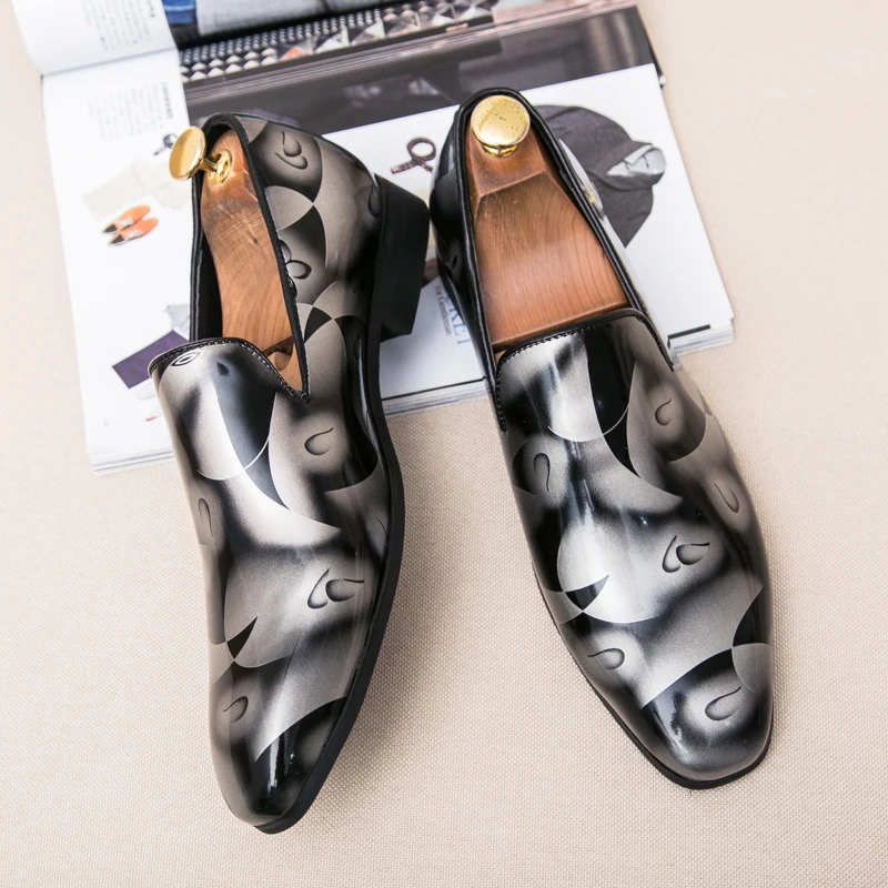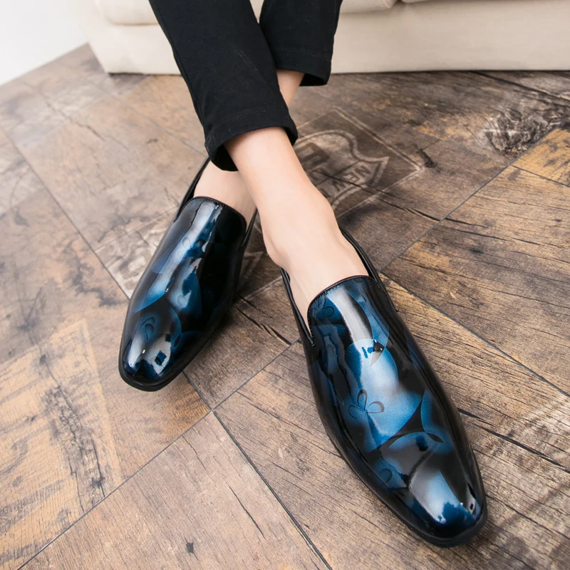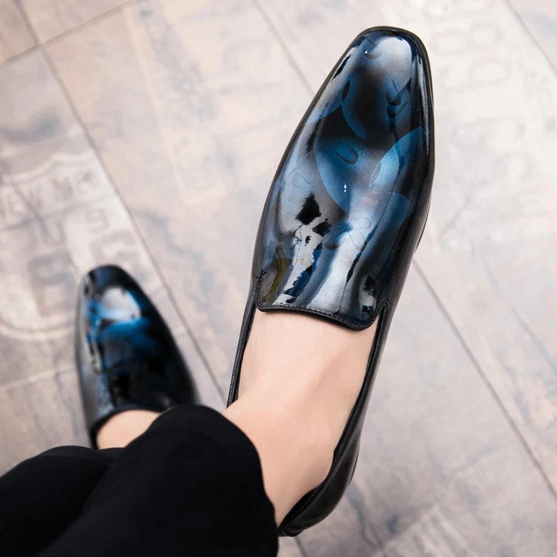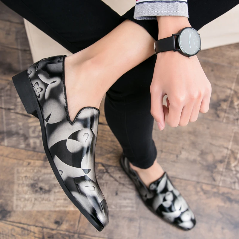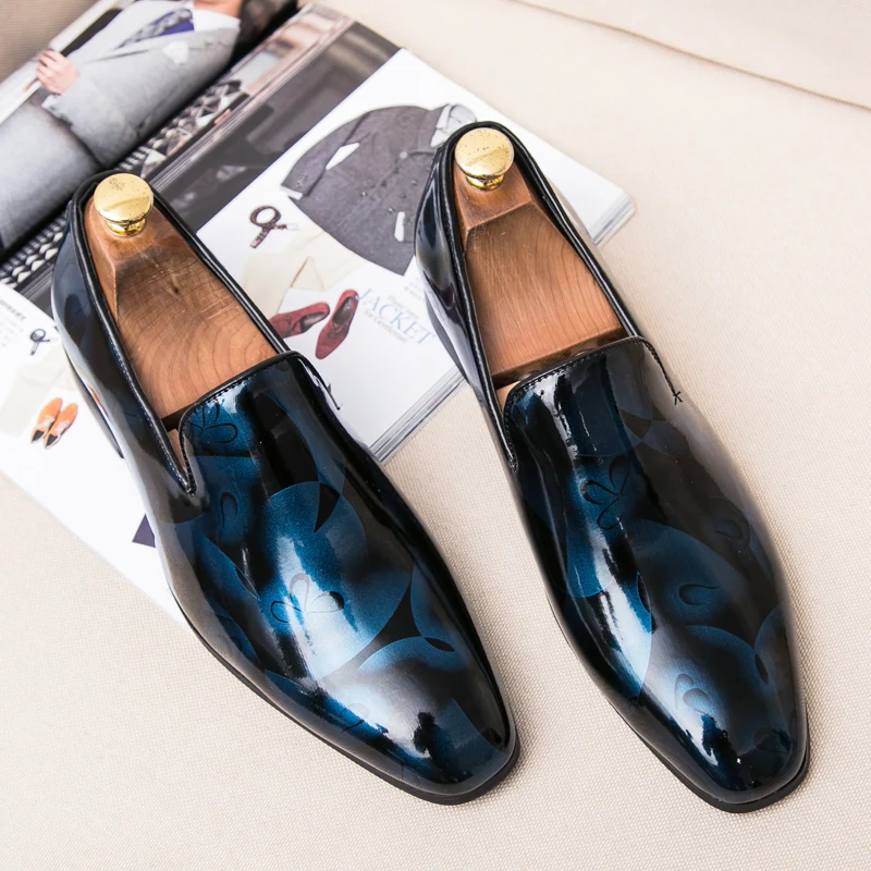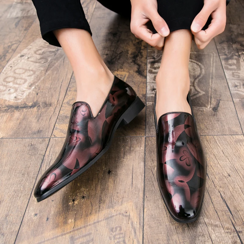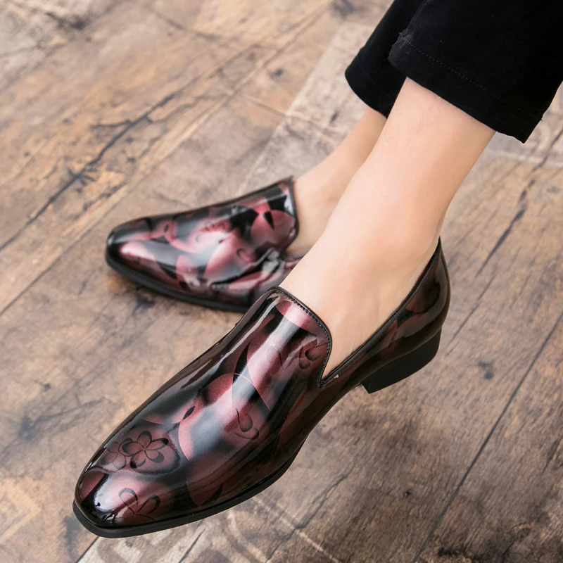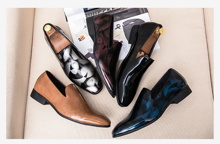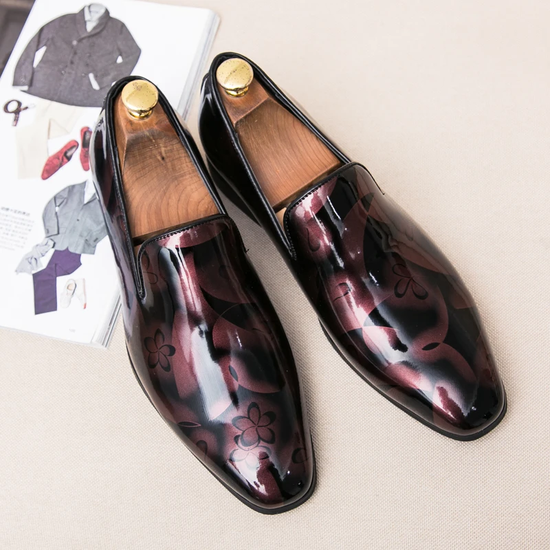 Men Dress Shoes Floral Pattern Men Formal Shoes Patent Leather Luxury Fashion Groom Wedding Shoes Men Dress Shoes Oxfords wx5