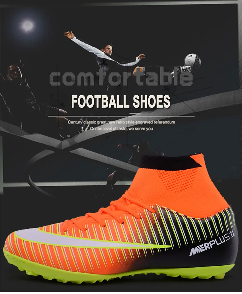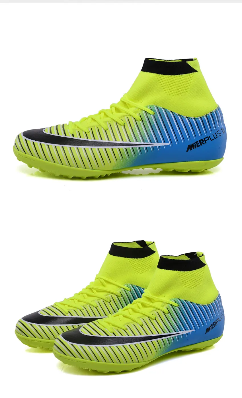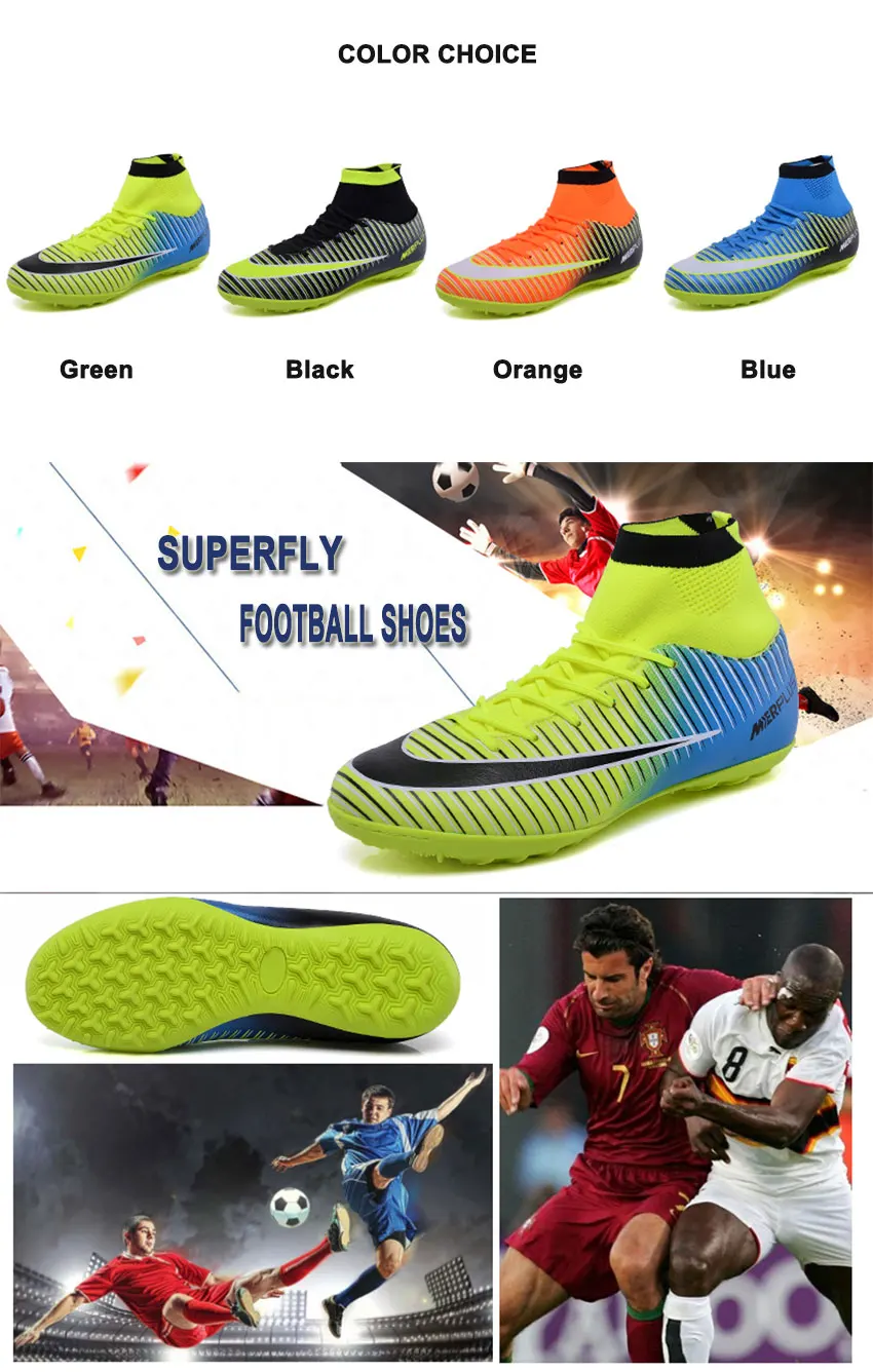 Men Football Boots TF Futsal Shoes Turf Soccer Shoes Superfly High Ankle Sock Cleats Outdoor Professional Sport Trainer Sneakers with Shin Guard