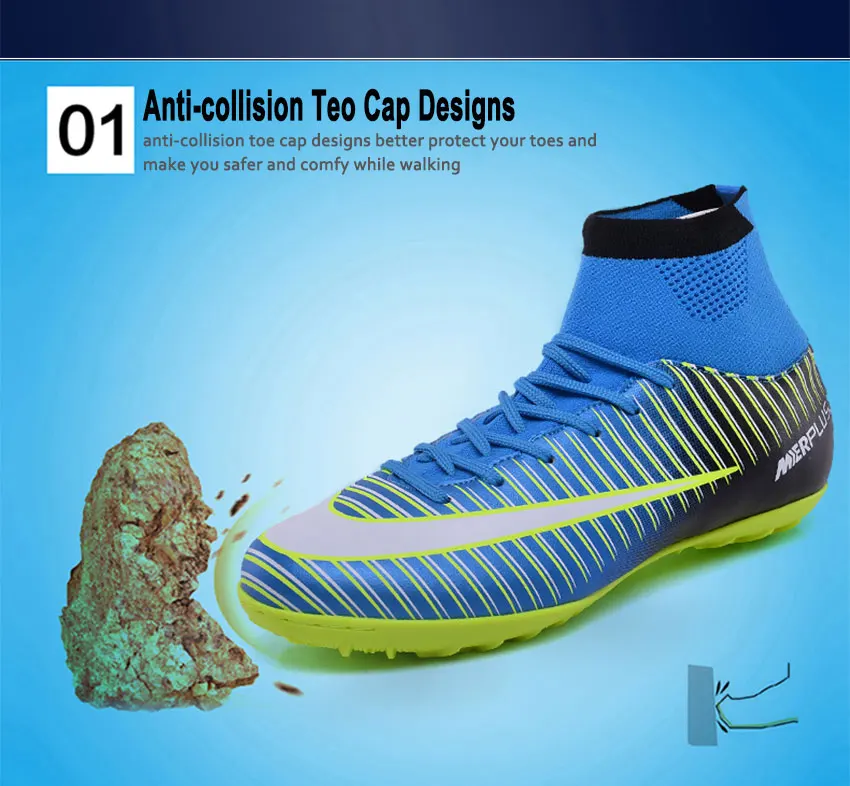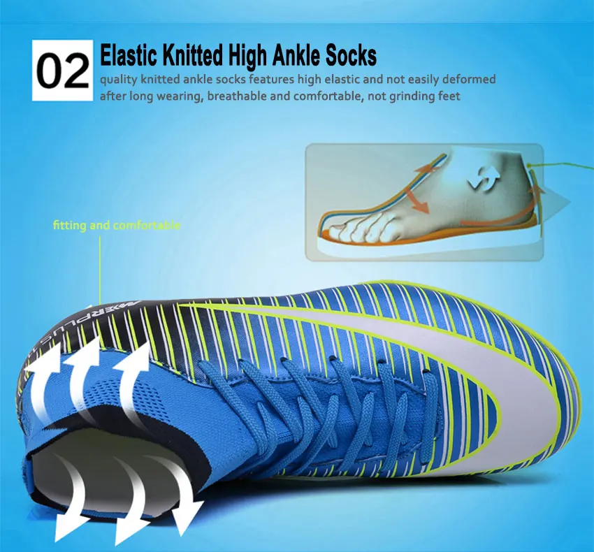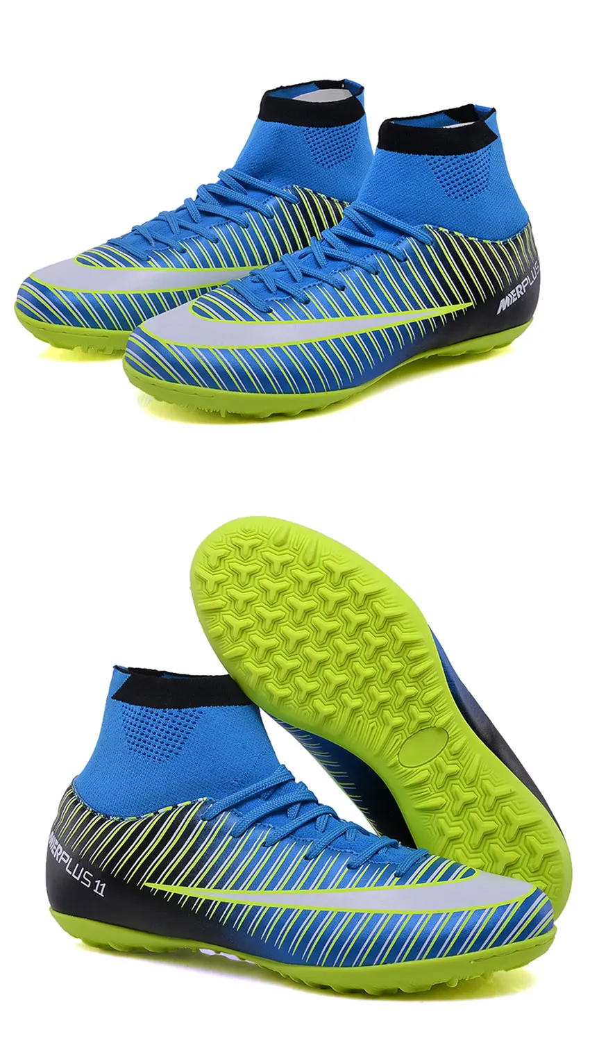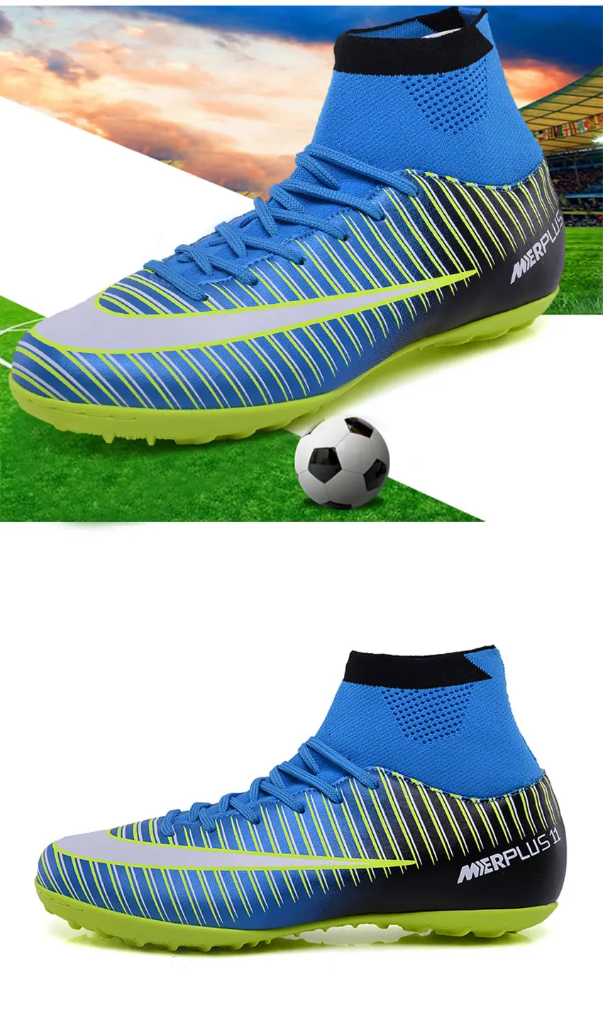 Men Football Boots TF Futsal Shoes Turf Soccer Shoes Superfly High Ankle Sock Cleats Outdoor Professional Sport Trainer Sneakers with Shin Guard