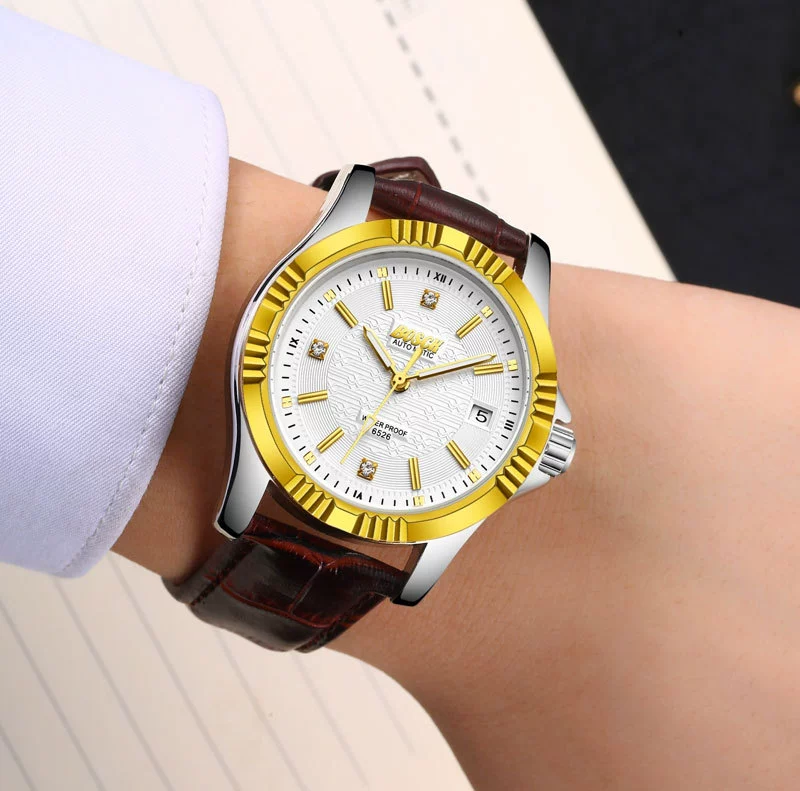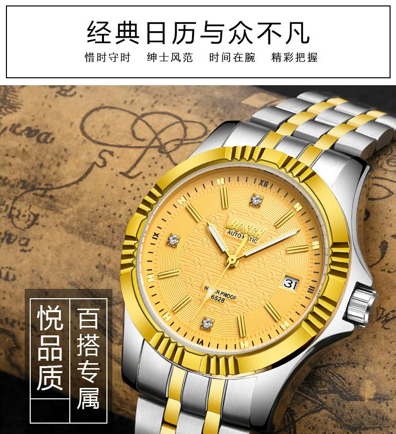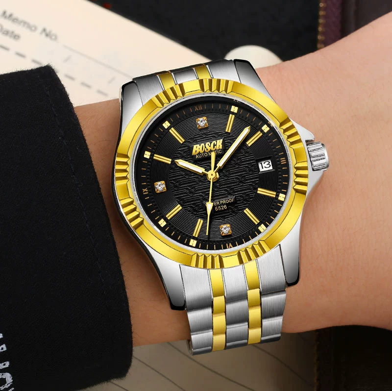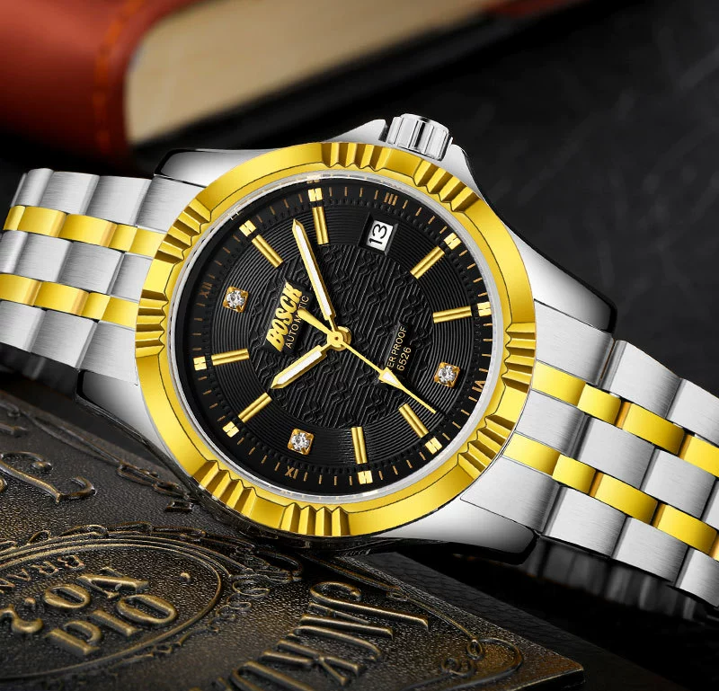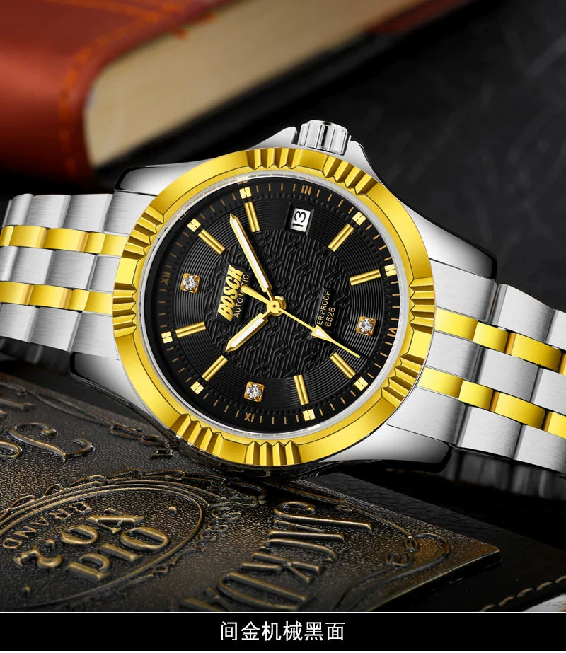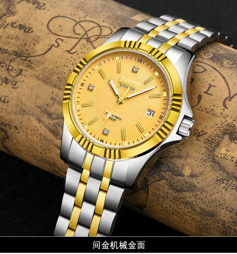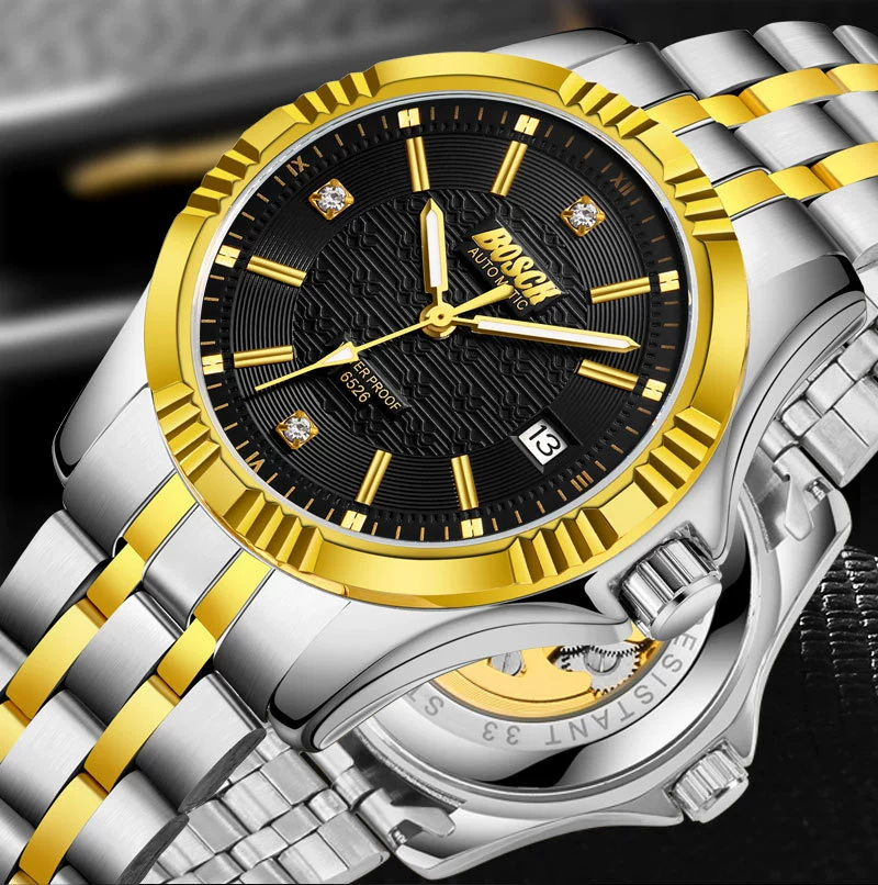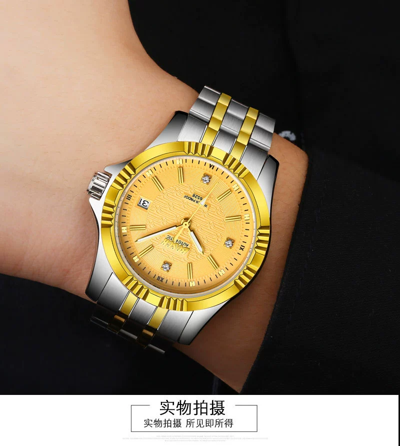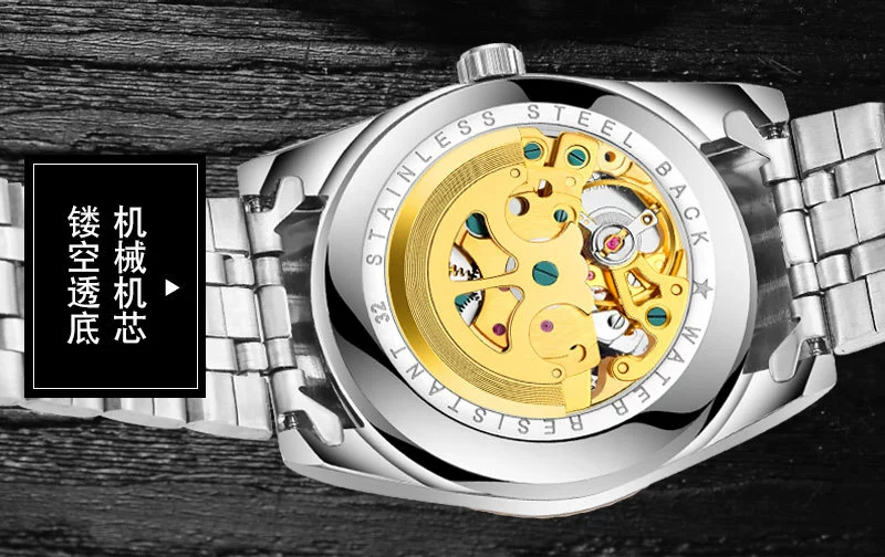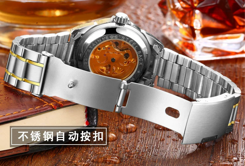 Men Gold Watches Automatic Mechanical Watch Male Luminous Wristwatch Stainless Steel Band Luxury Brand Sports Design Watches