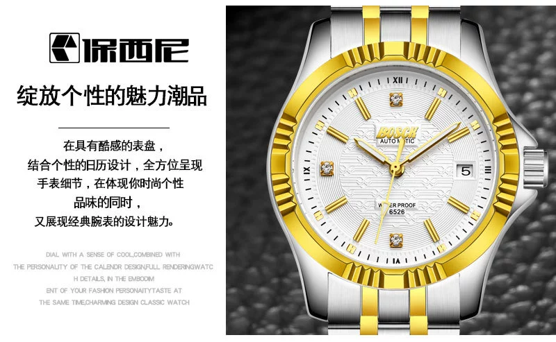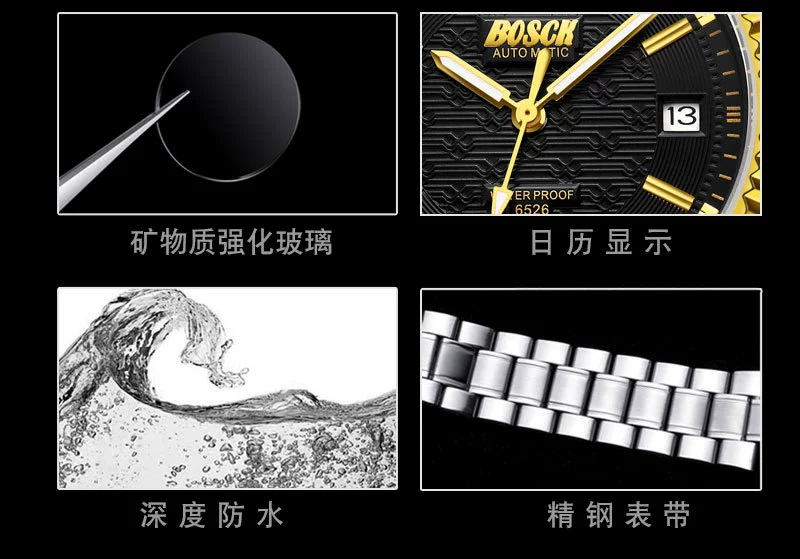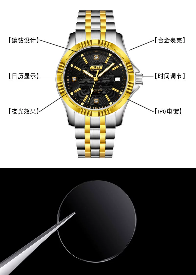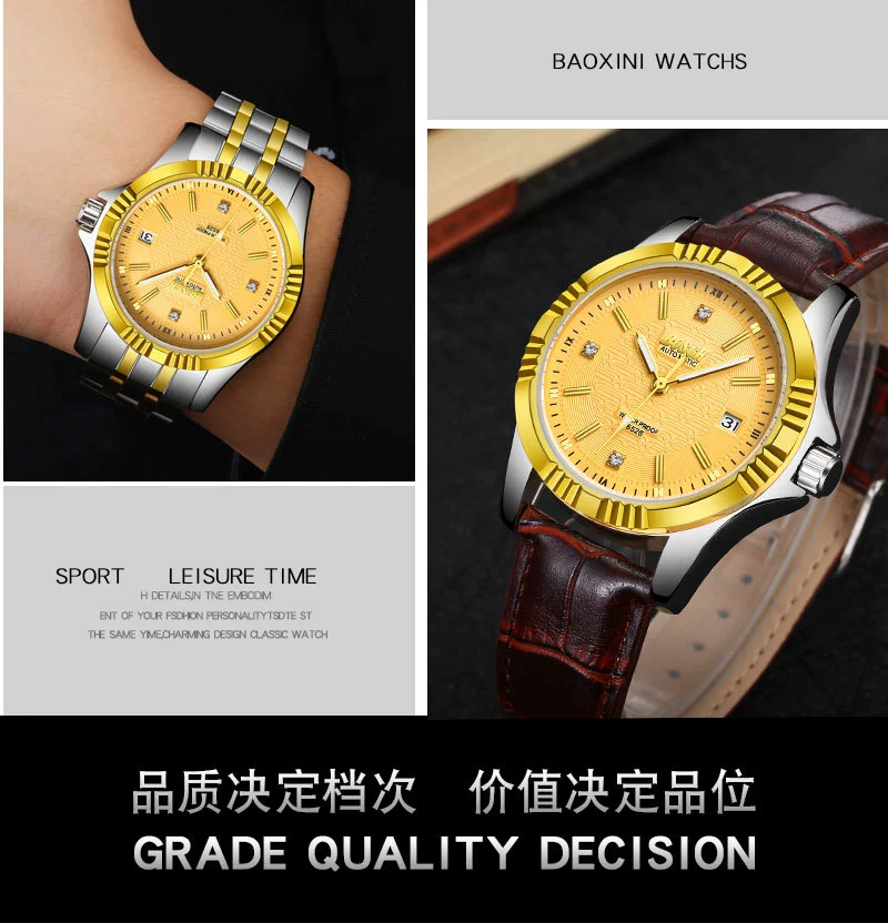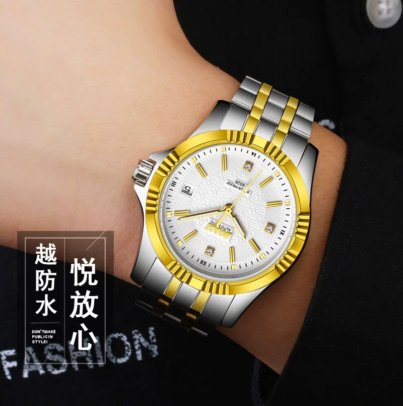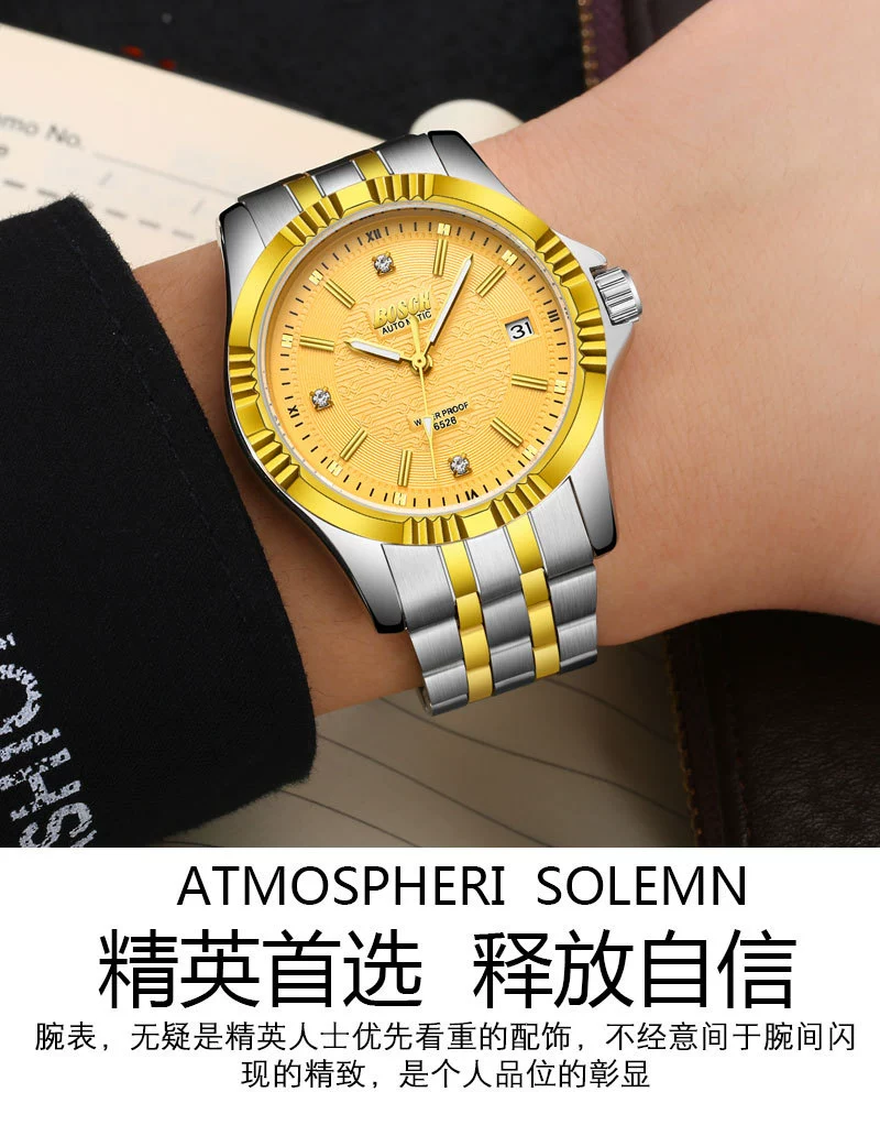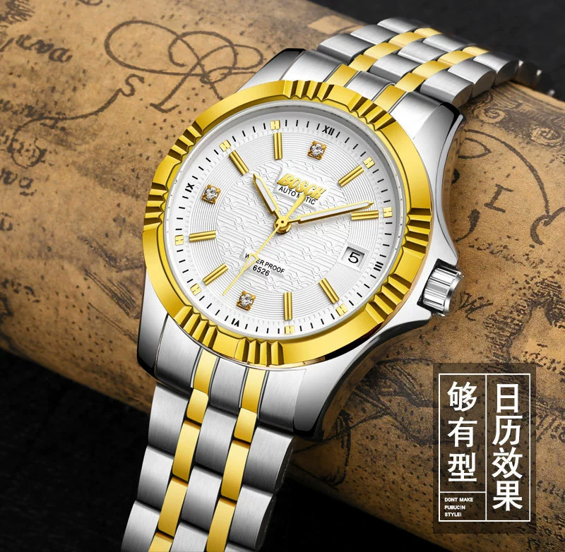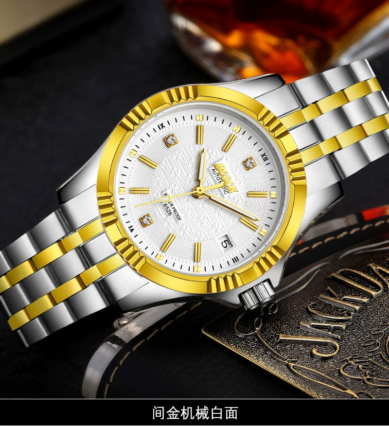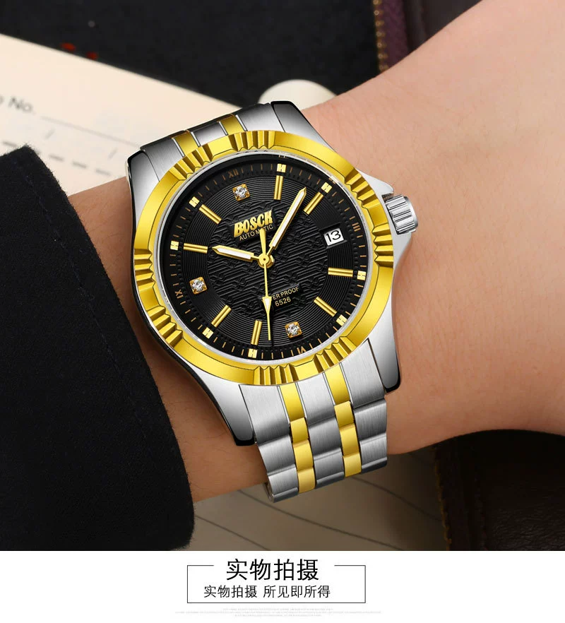Men Gold Watches Automatic Mechanical Watch Male Luminous Wristwatch Stainless Steel Band Luxury Brand Sports Design Watches
