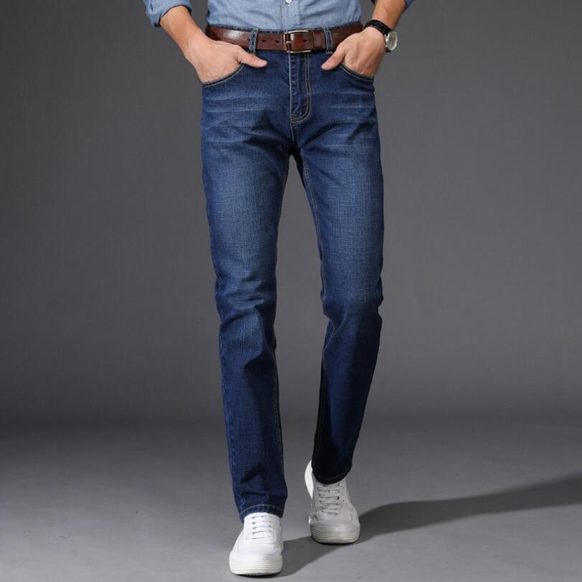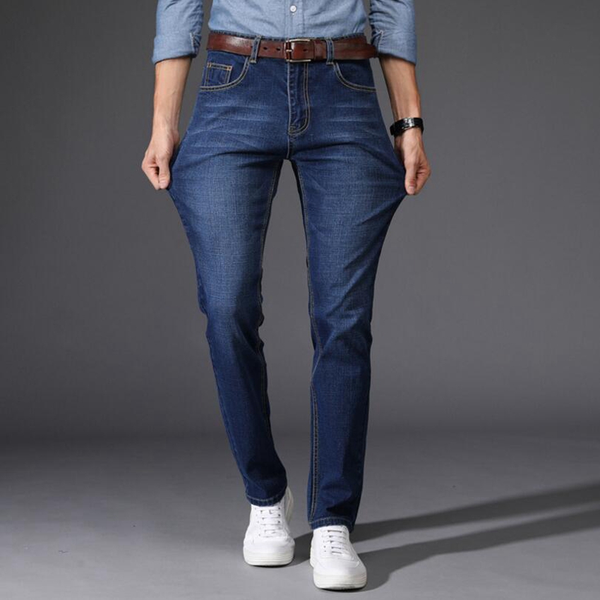 Men Jeans Business Casual Thin Summer Straight Slim Fit Blue Jeans Stretch Denim Pants Trousers Classic Cowboys Young Man Jeans