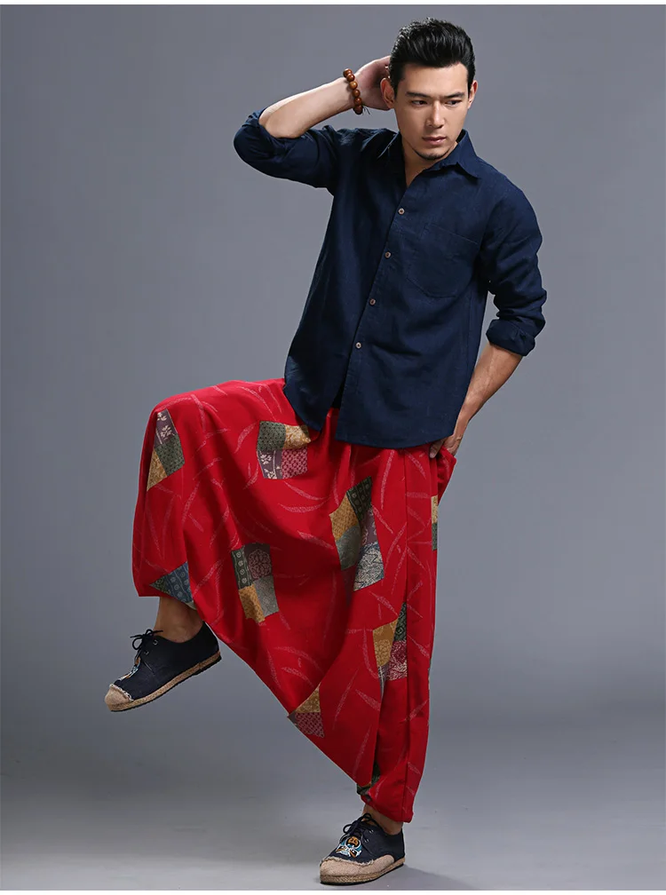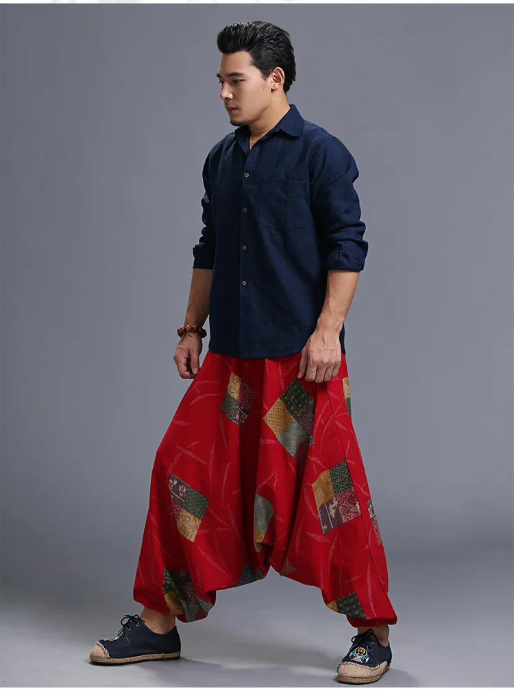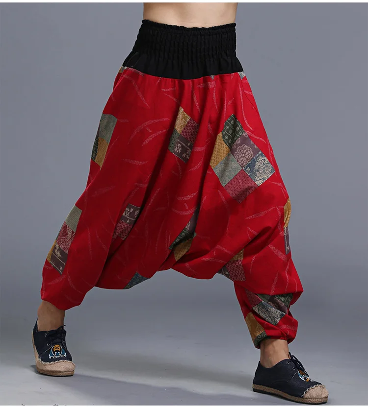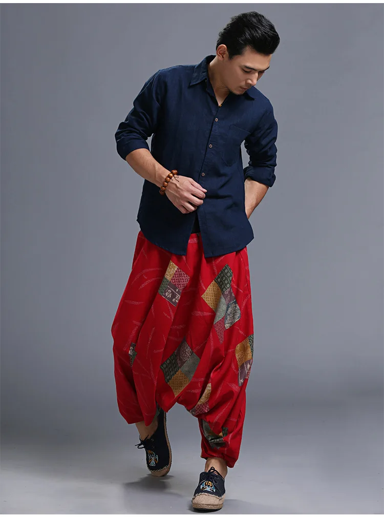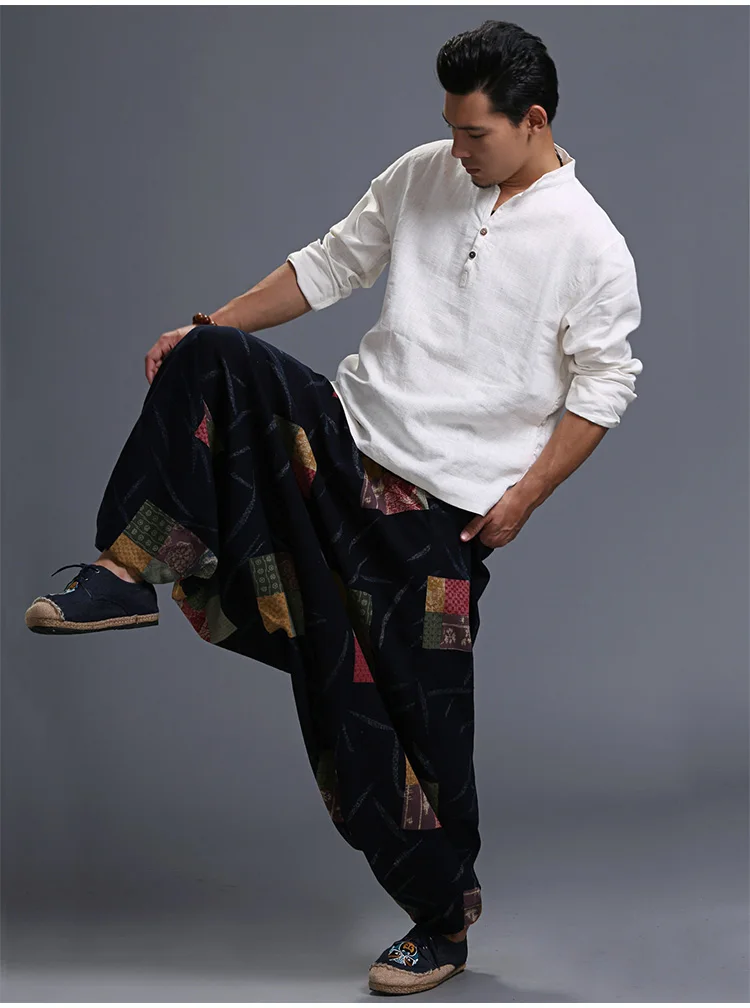Men Long Trousers Nepal Style Pants Cotton Crotch Pants for Male Cross Pants Joggers Ethnic Bottoms Pantalon Homme Broek Mannen
