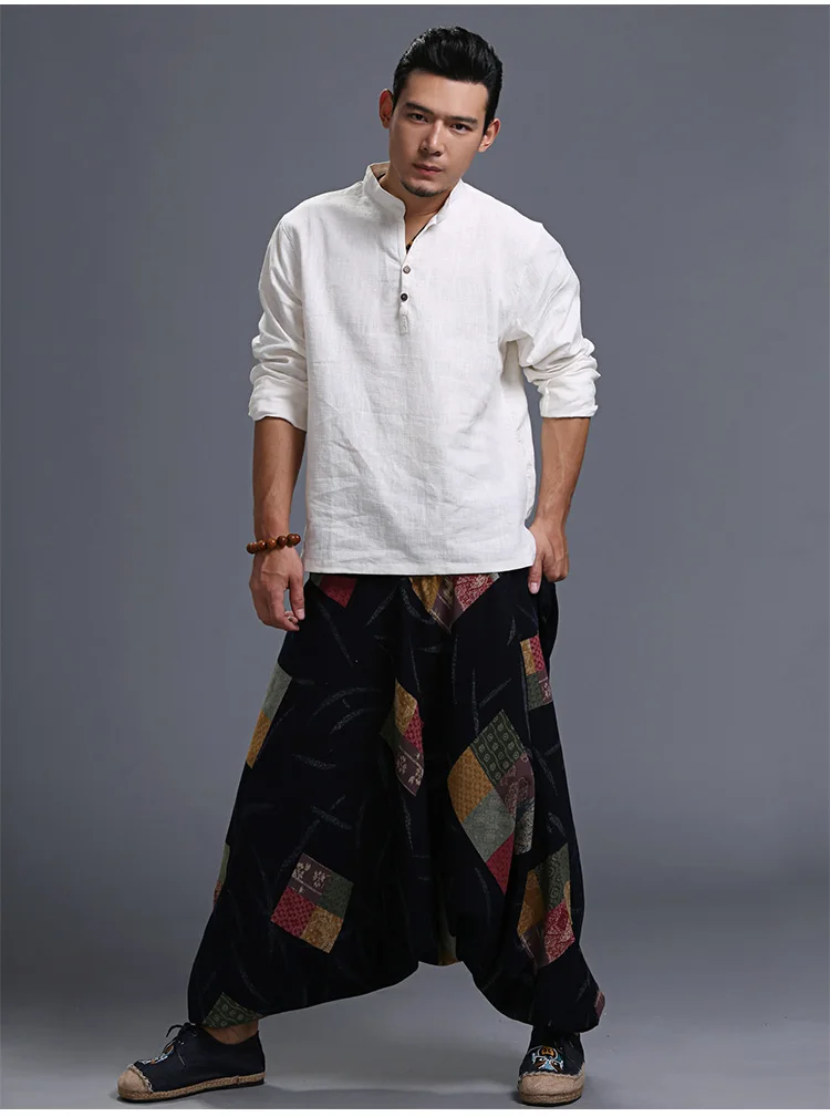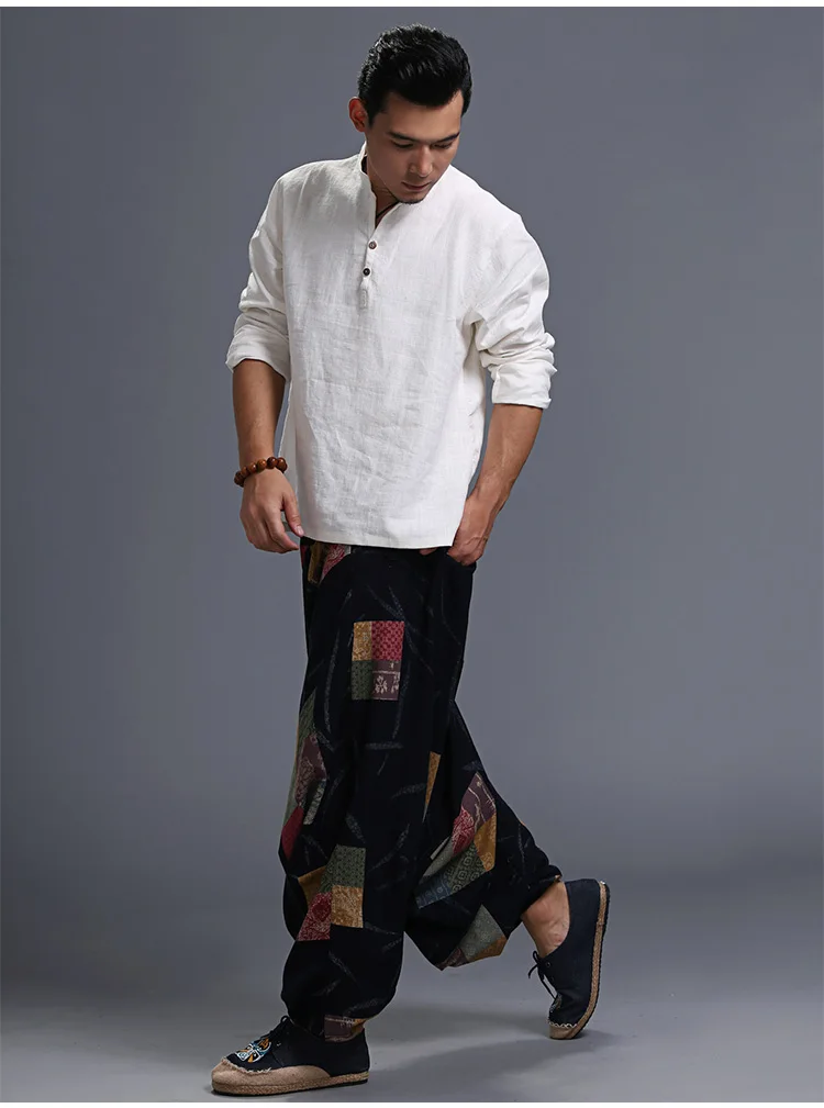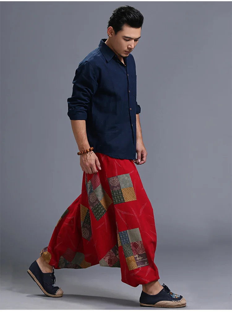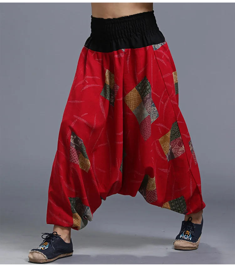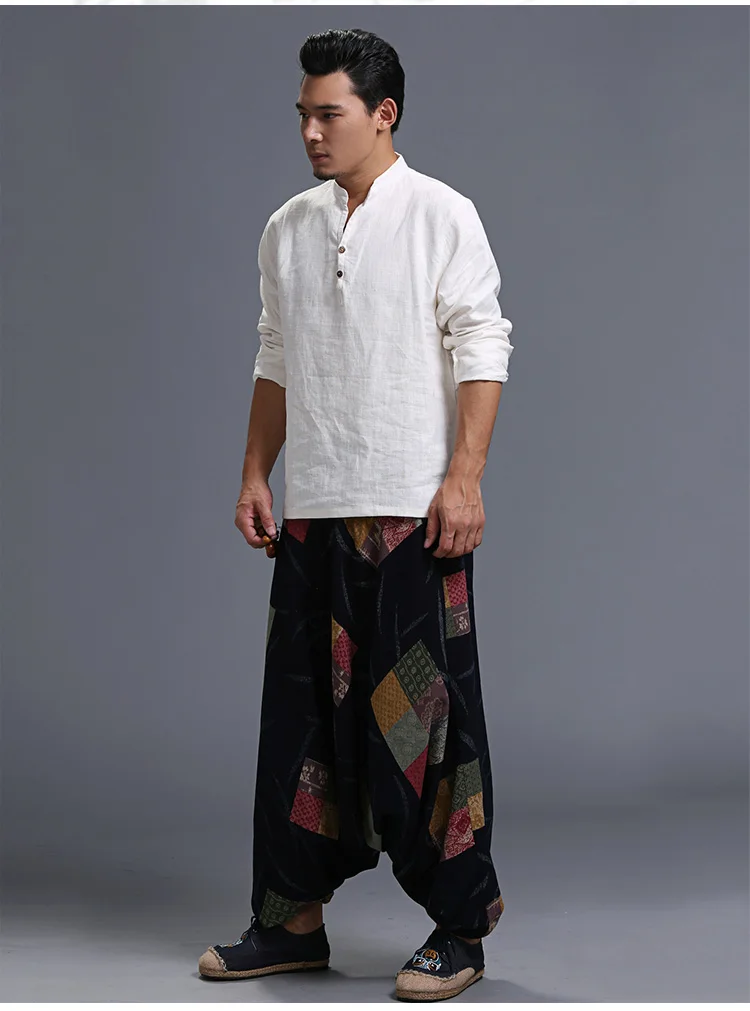 Men Long Trousers Nepal Style Pants Cotton Crotch Pants for Male Cross Pants Joggers Ethnic Bottoms Pantalon Homme Broek Mannen
