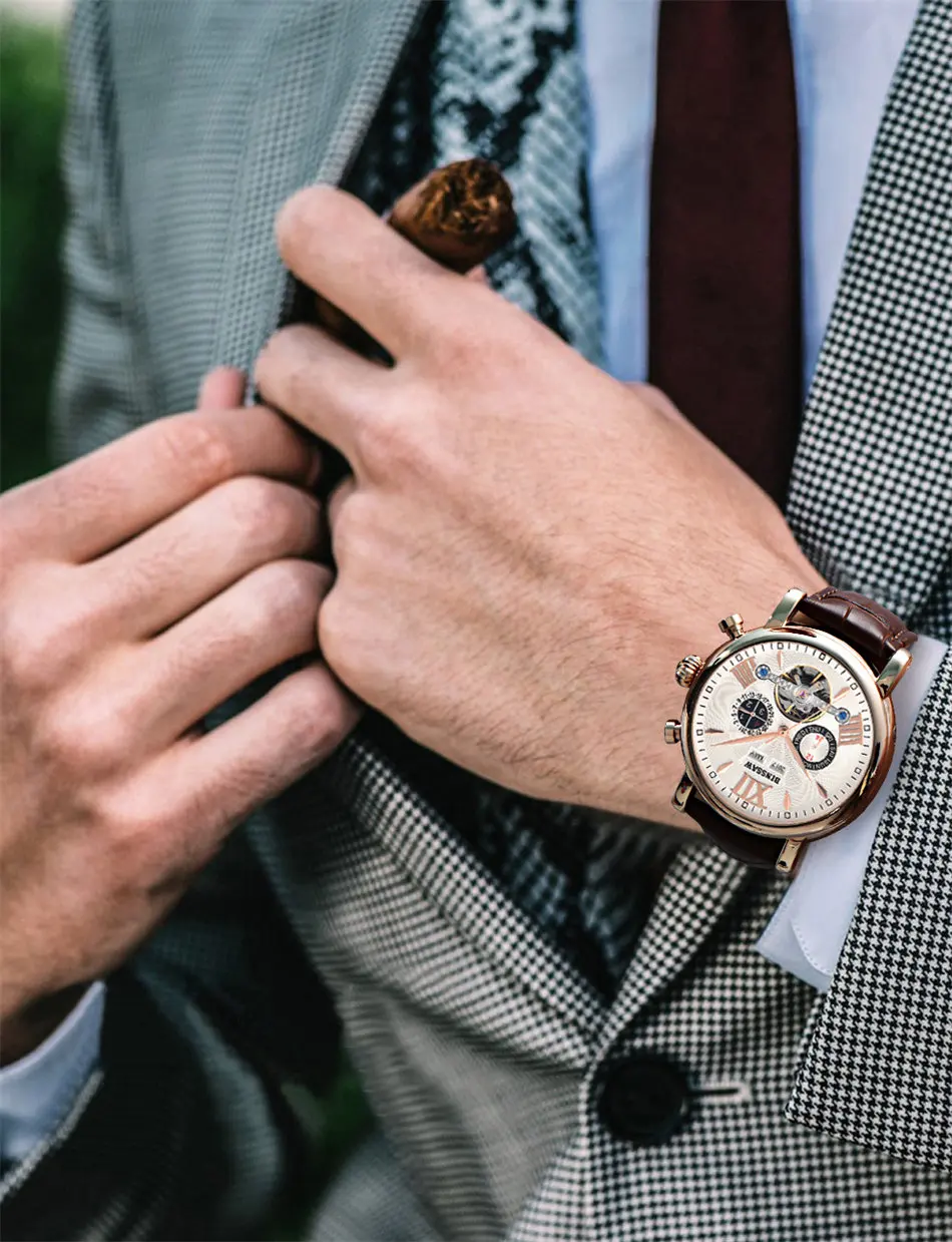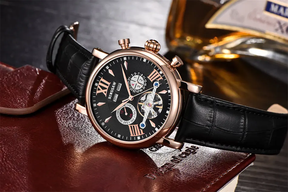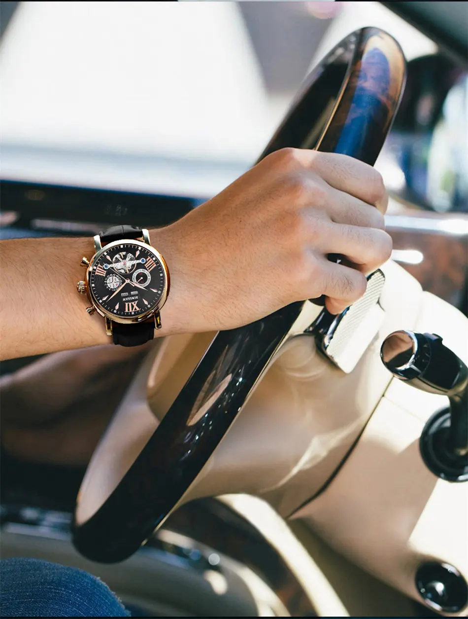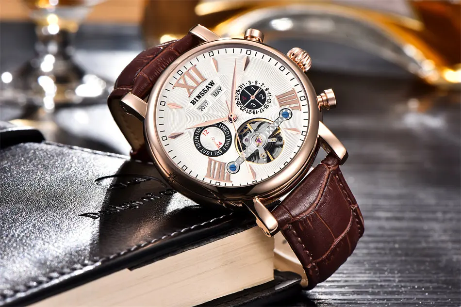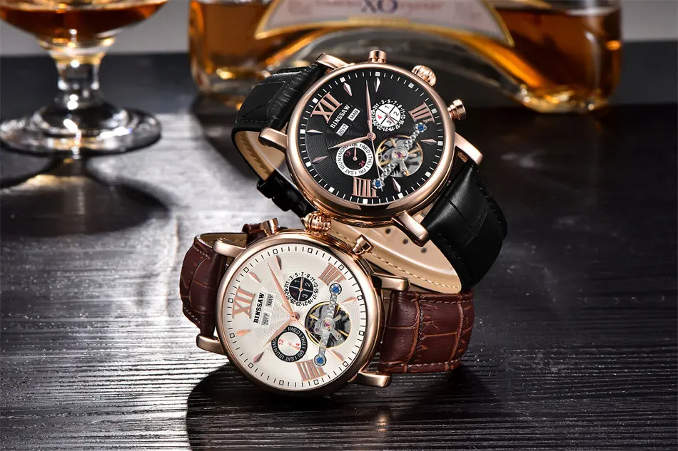Men Luxury Brand Automatic Mechanical Watch Tourbillon Waterproof Leather Man Calendar Sports Military Watches Relogio Masculino Drop Shipping
