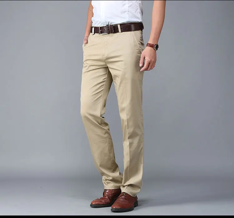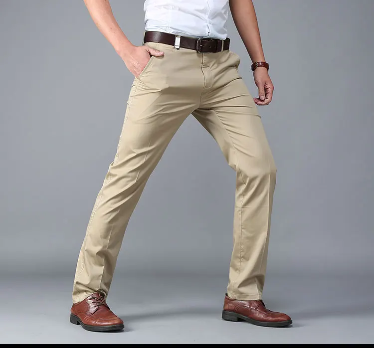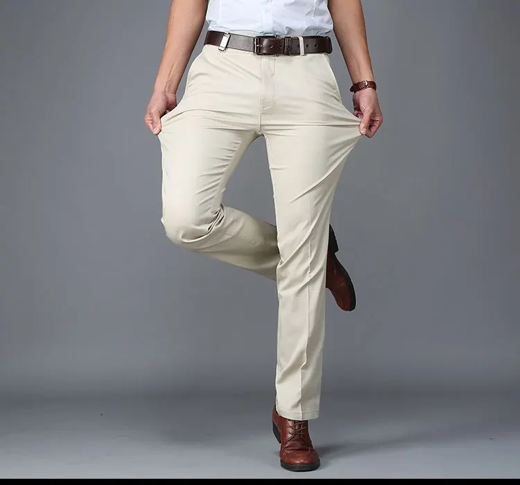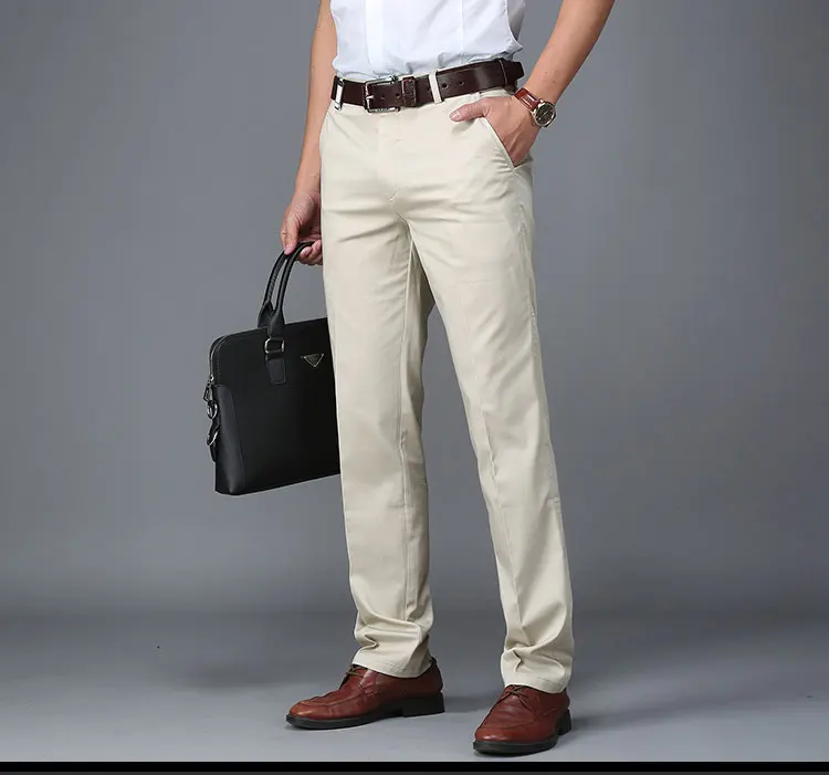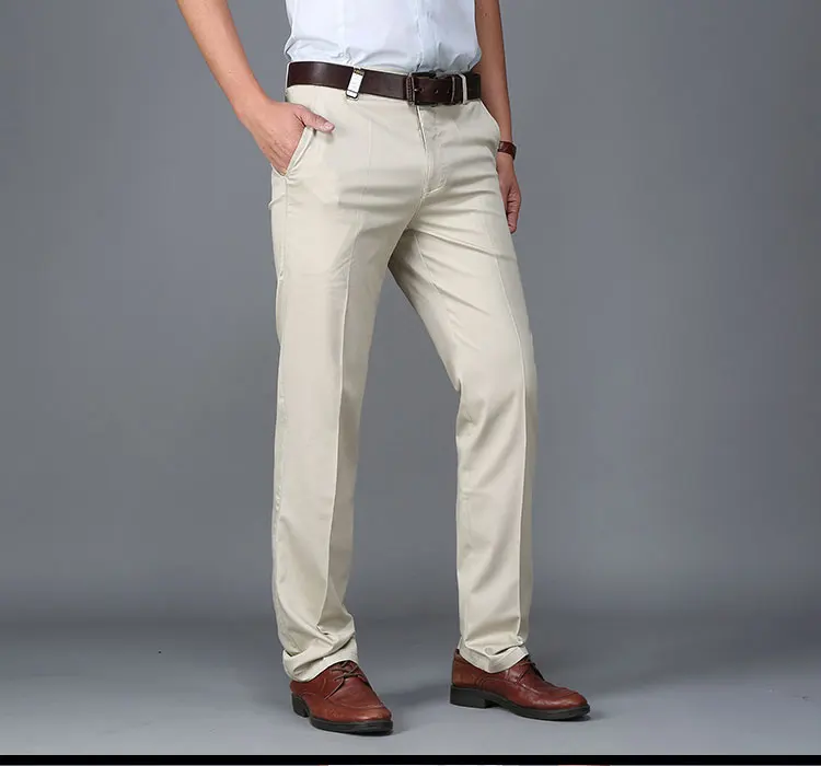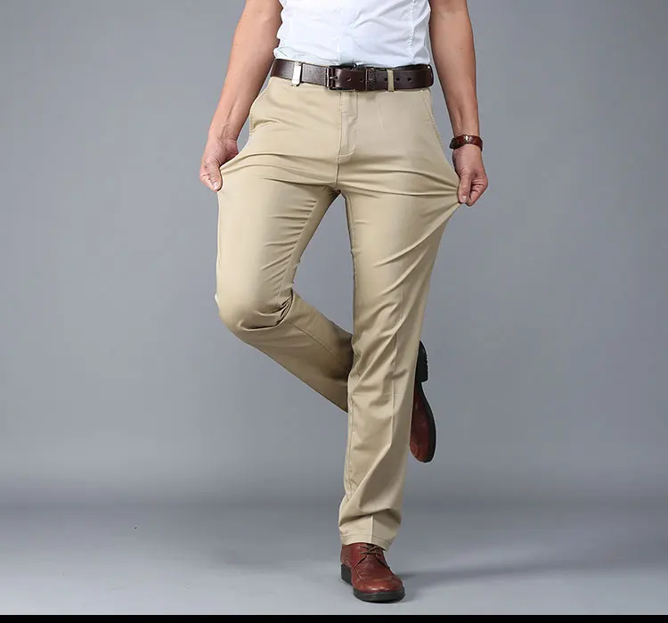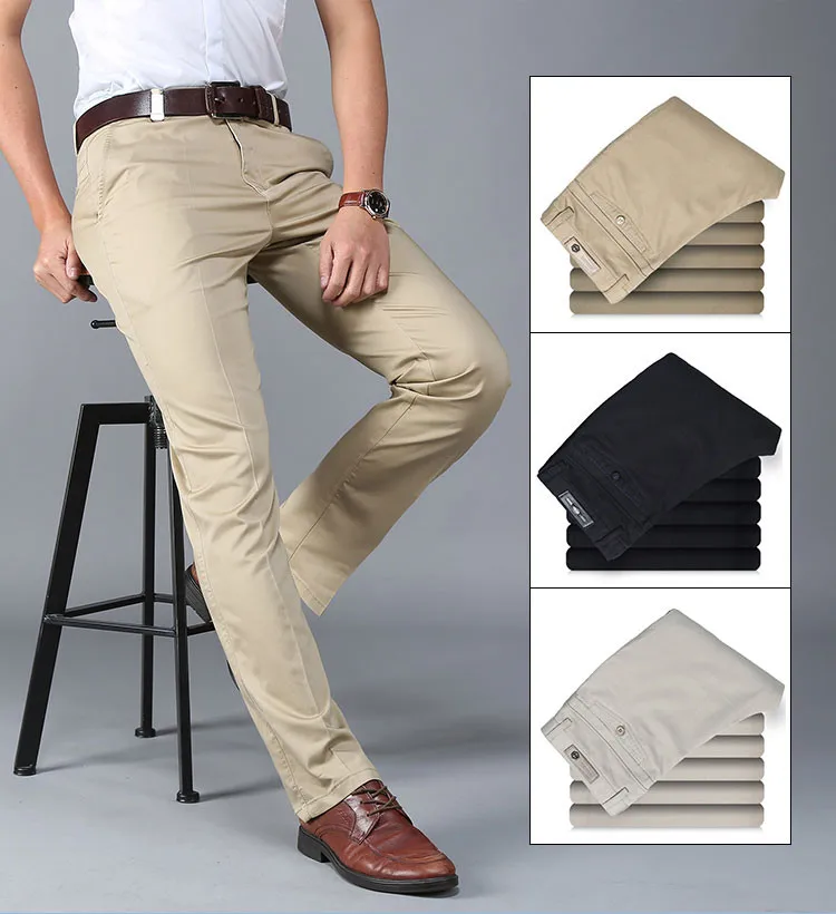 Men Pants Casual Classic Summer Thin Men Social Pants Cotton Straight Trousers pantalon homme Plus Size Khaki Pants Men Black