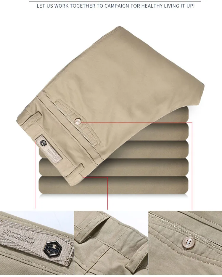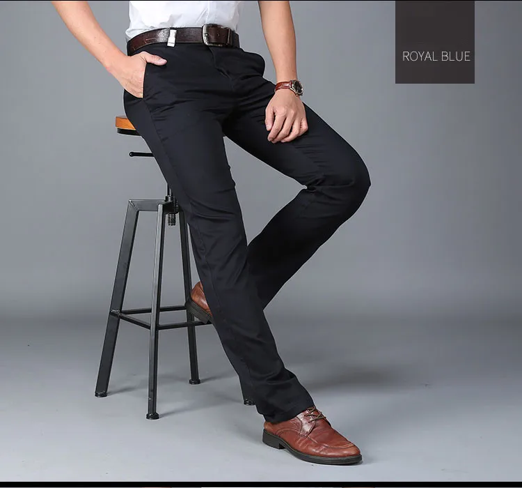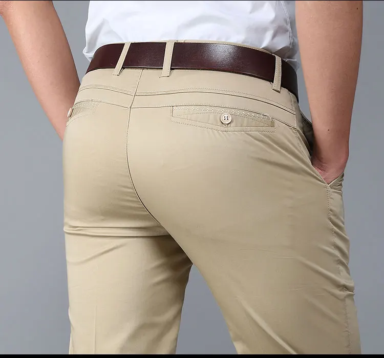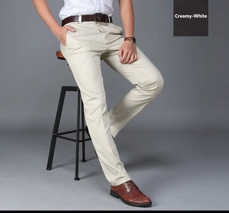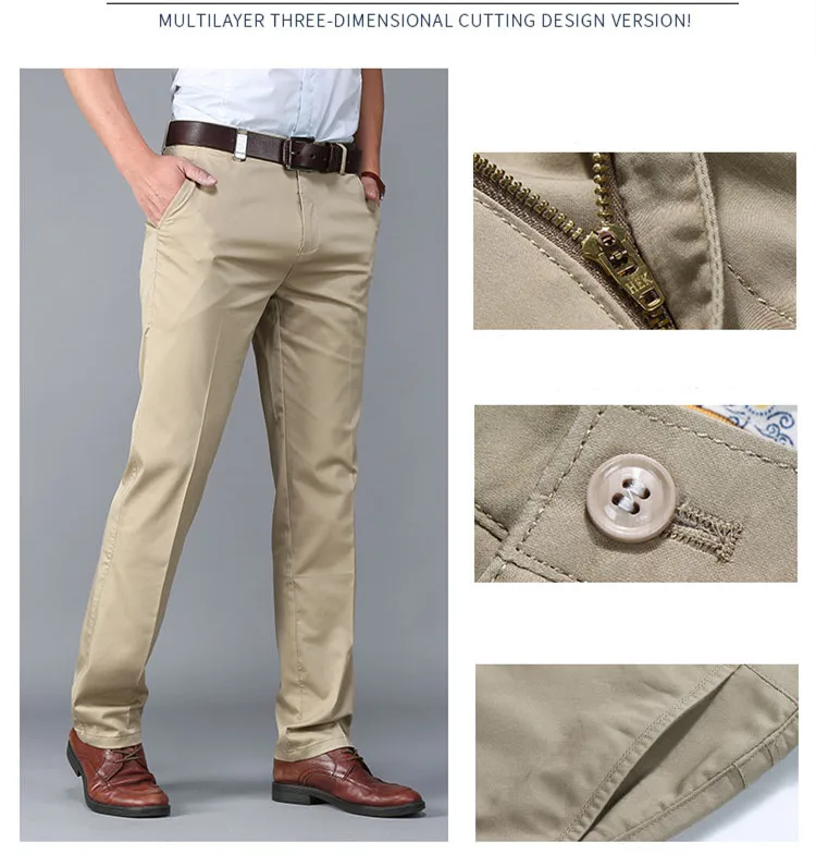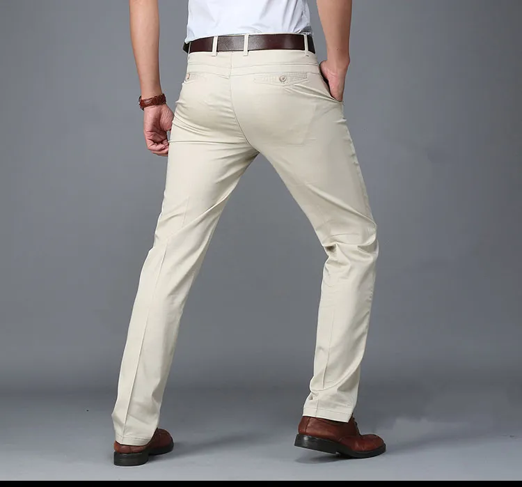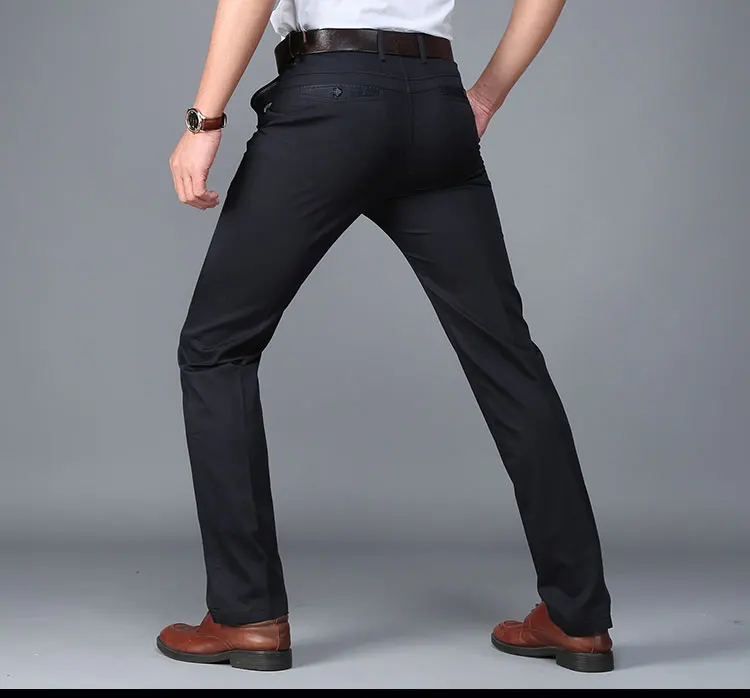 Men Pants Casual Classic Summer Thin Men Social Pants Cotton Straight Trousers pantalon homme Plus Size Khaki Pants Men Black