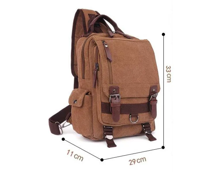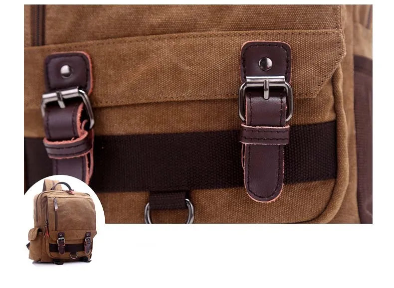 Men Rucksack Canvas Retro 10 Inch Single Strap Crossbody Bags Travel Backpacks for Teenage Computer Knapsack Bags
