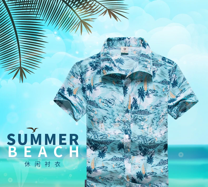 Men Shirt Summer Style Palm Tree Print Beach Hawaiian Shirt Men Casual Short Sleeve Hawaii Shirt Chemise Homme Asian Size 5XL