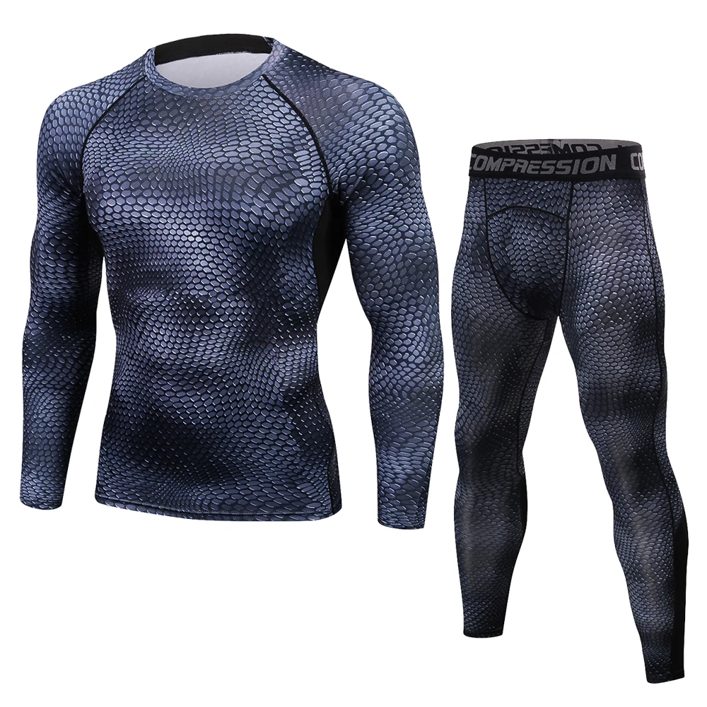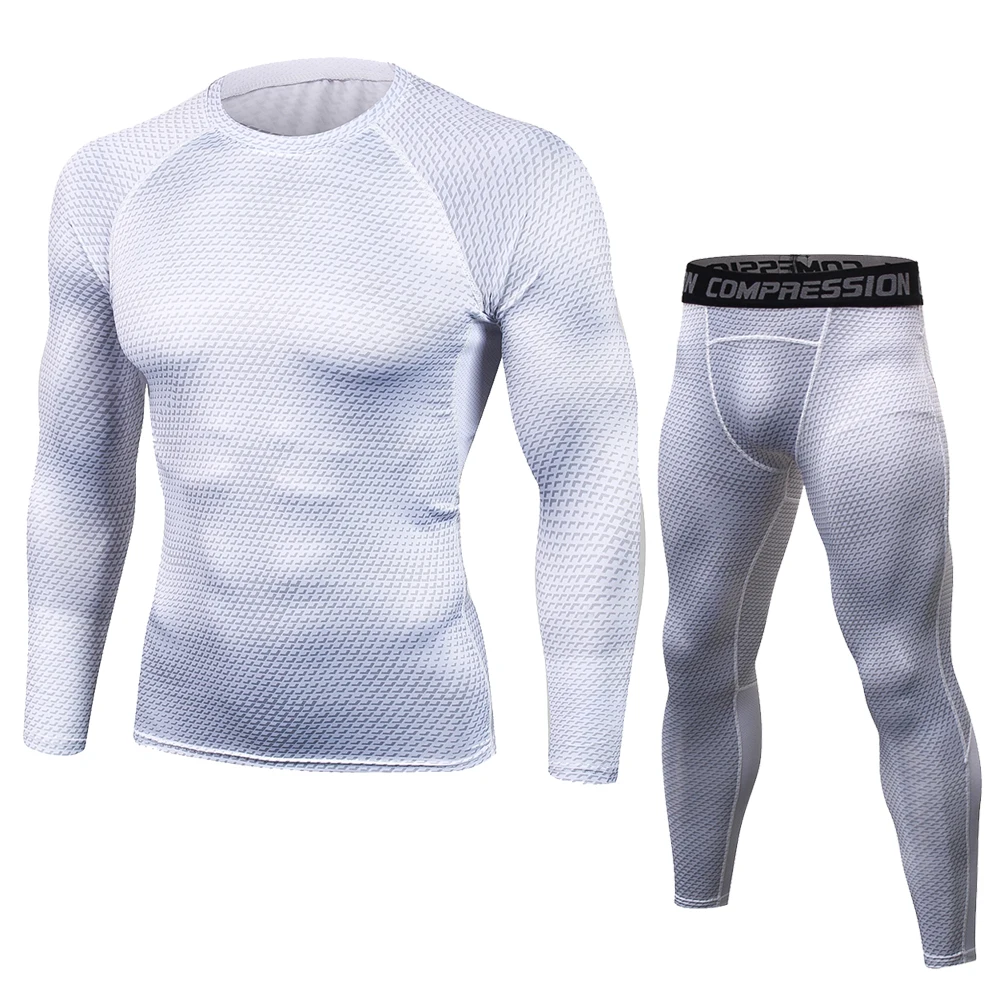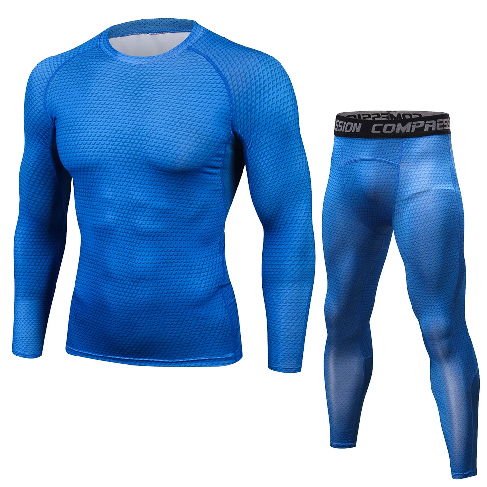 Men T shirts Trousers Set 2 Piece Men’s Sportswear Compression Suit Joggers Fitness Base Layer Shirt Leggings Rashguard Clothes