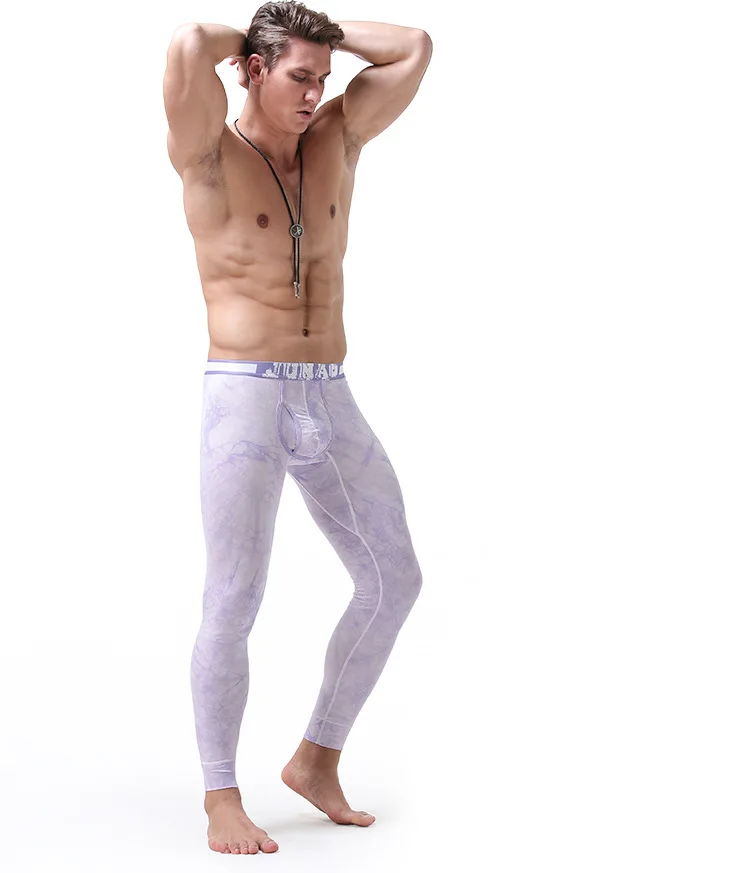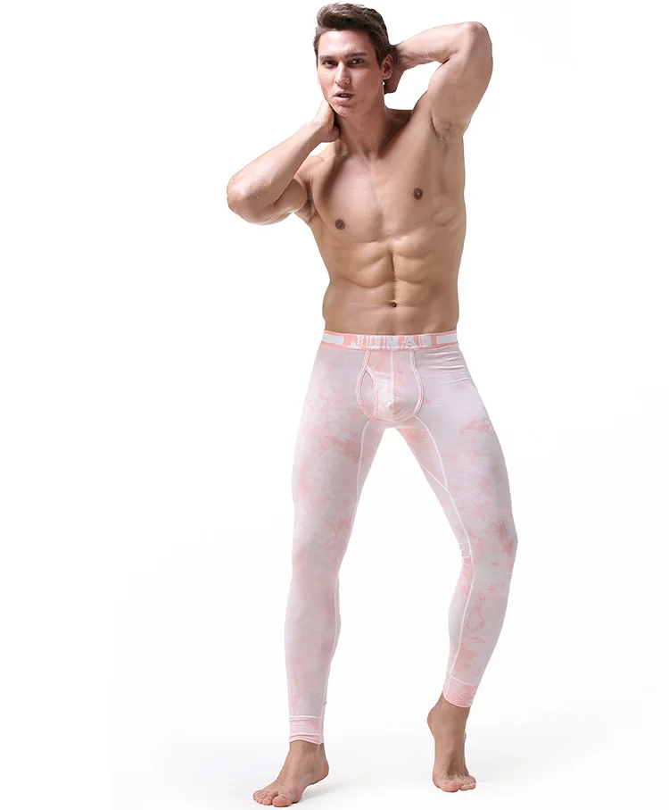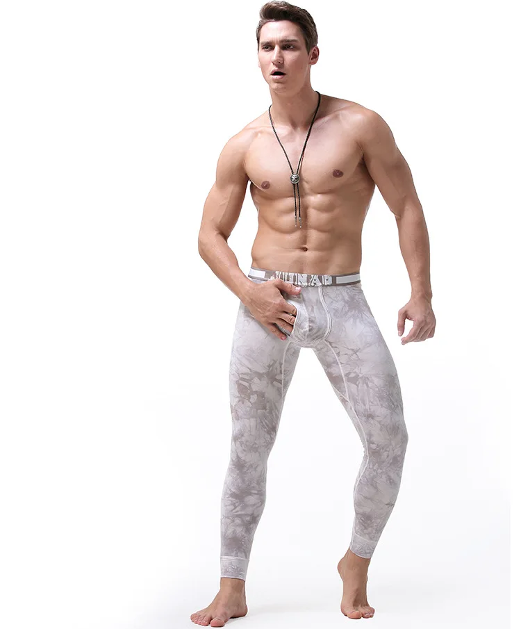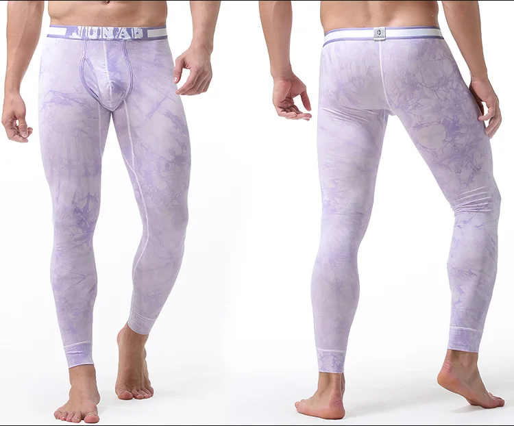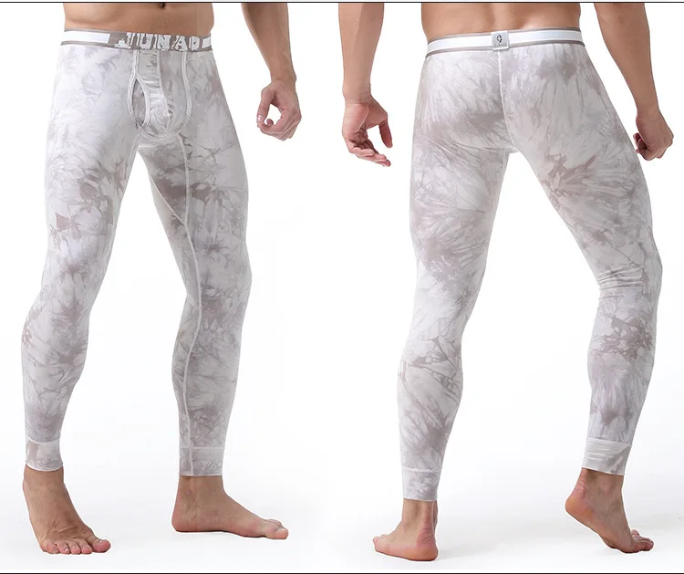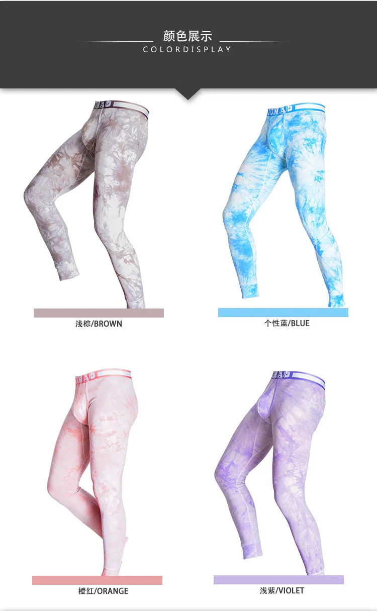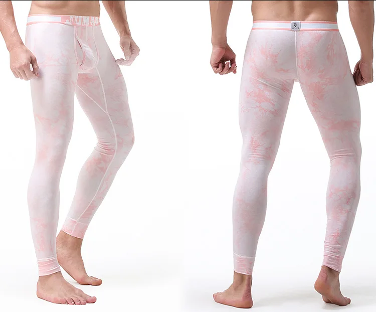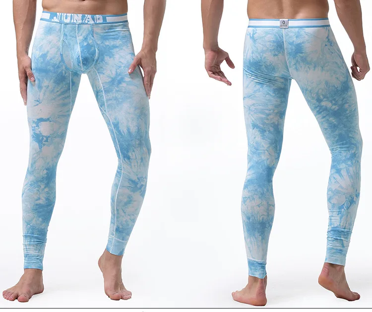 Men Thermal Underwear Long Johns Tie Dye Printed Mens Leggings Hombre Sexy U Pouch Youth Tight Thermal Clothing Cotton Winter