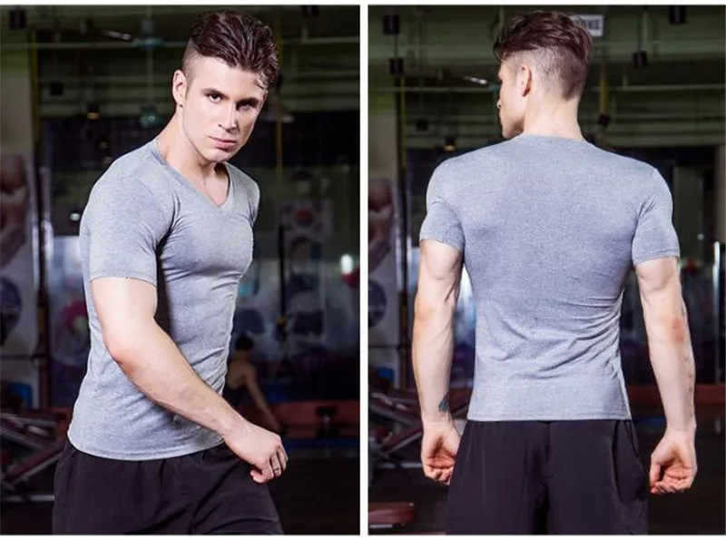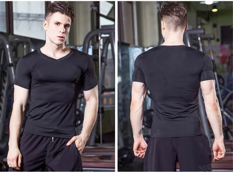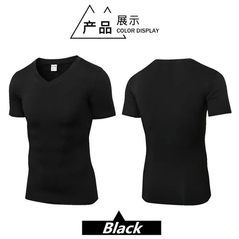 Men Pro Wicking&Quick-Dry T-Shirt,Elastin Compression Tight Short Sleeve Underwaer Undershirts,Sporting Protect V Neck Shirts,Anti Wrinkle