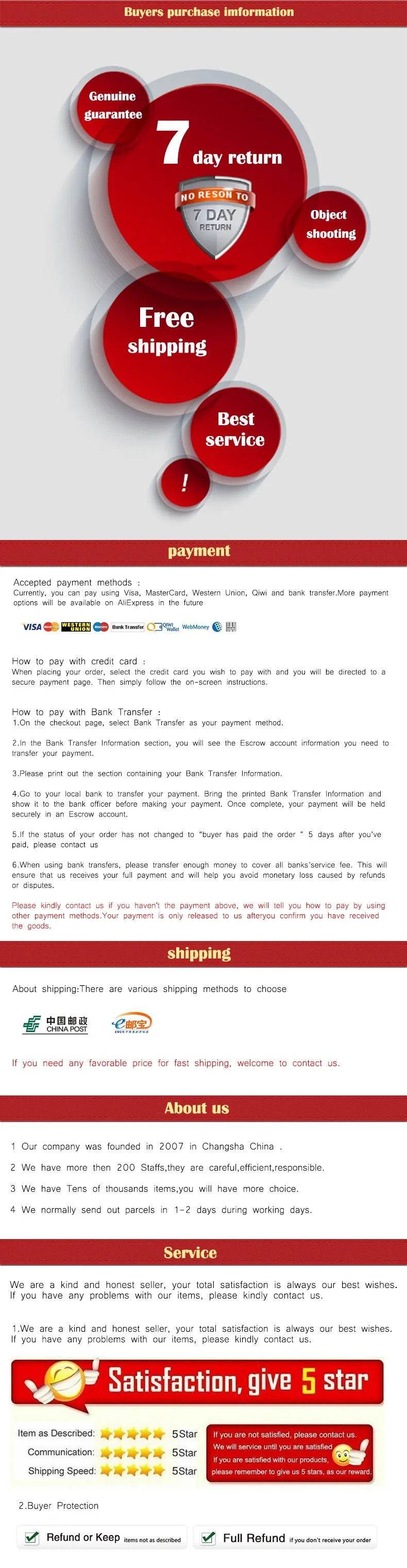 • If you did not receive the product within the guaranteed time( 45 days not including 2-5 day processing) you can request a refund or a reshipment.