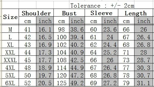 • CN Size : M , L , XL , 2XL , 3XL , 4XL , 5XL , 6XL