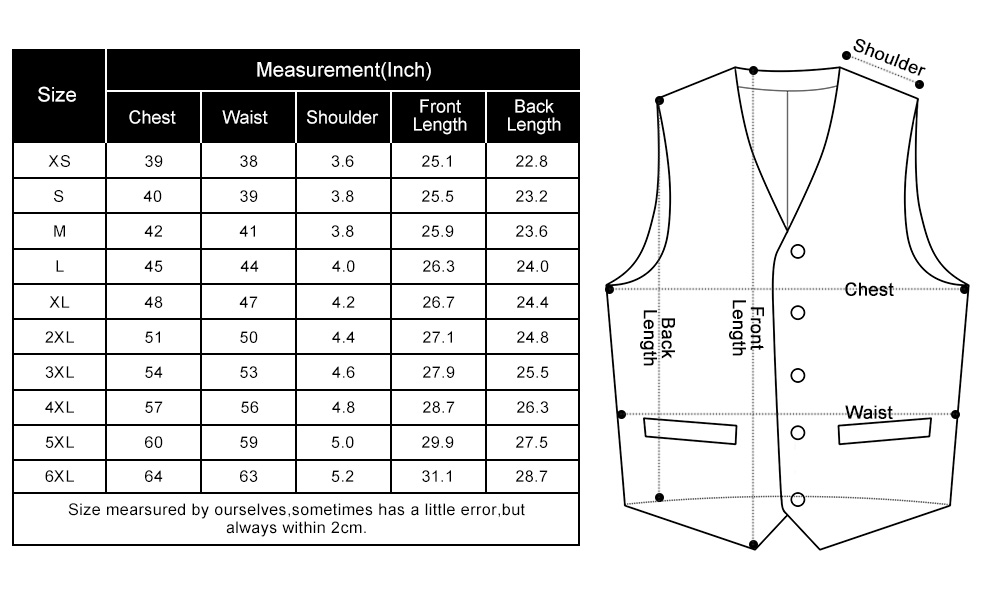 Waistcoat: 10 optional size; Tie Width: 3.4 inches(8.5cm) & Tie Length: 59 inches(150cm);