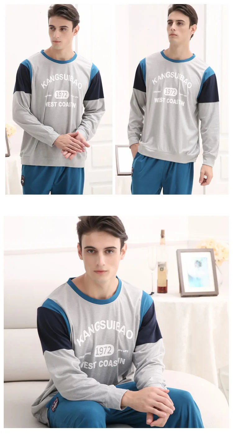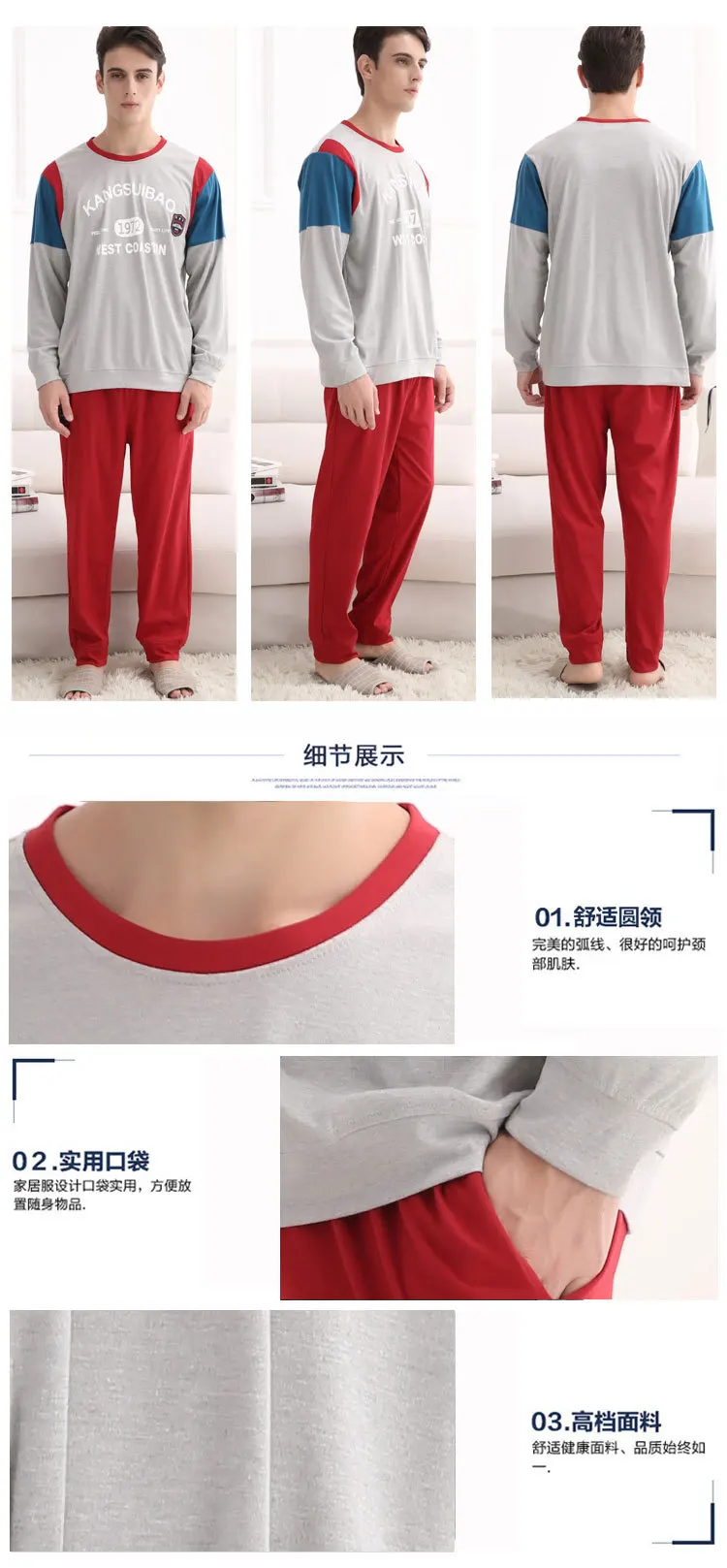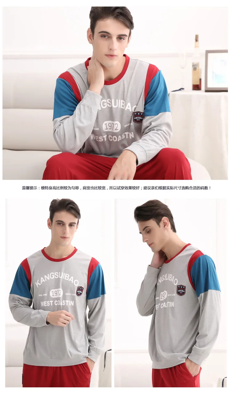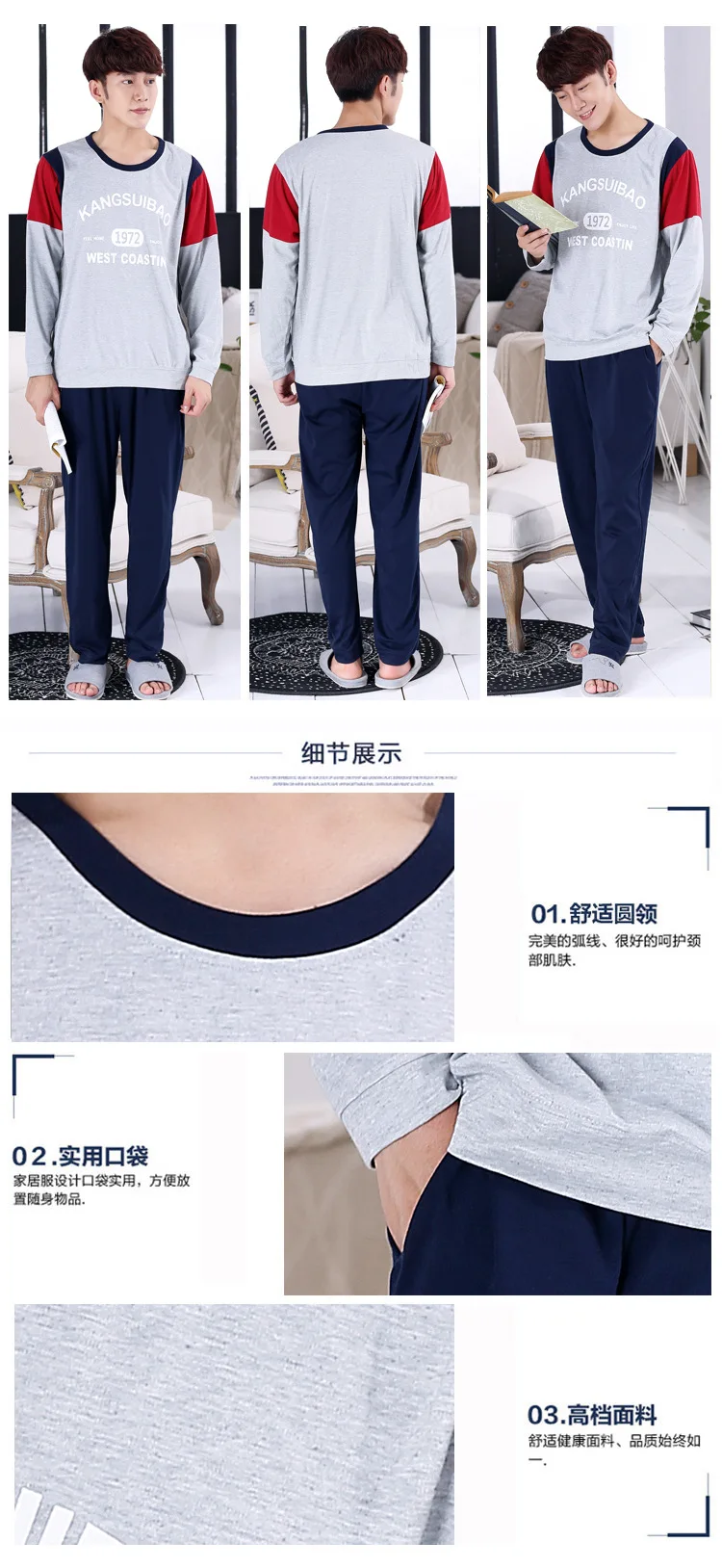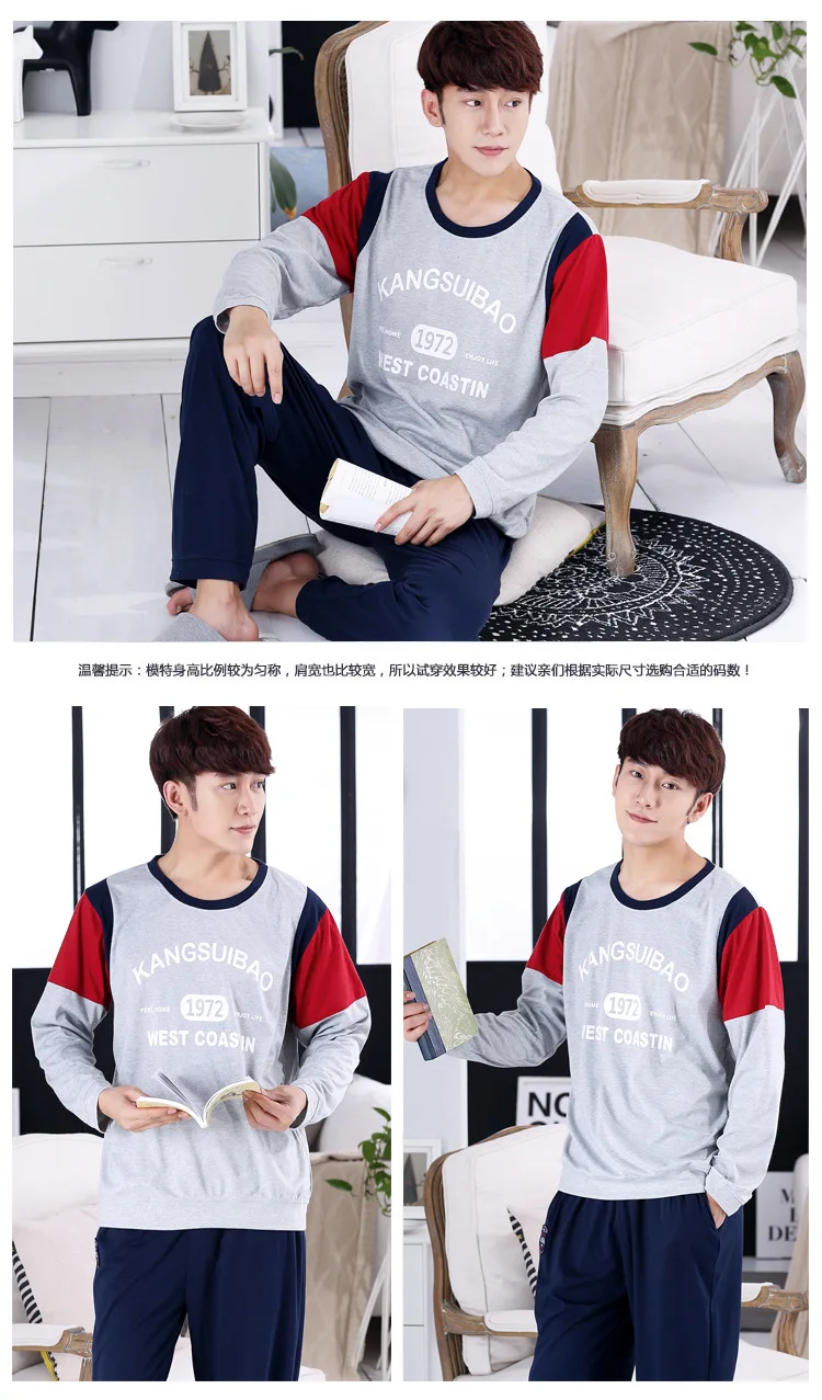 Item Name: Men’s Cotton Sleepwear Set Pajamas Autumn Winter Casual Long Sleeves Youth Man Cotton T Shirts Male Home Leisure Suit Homewear